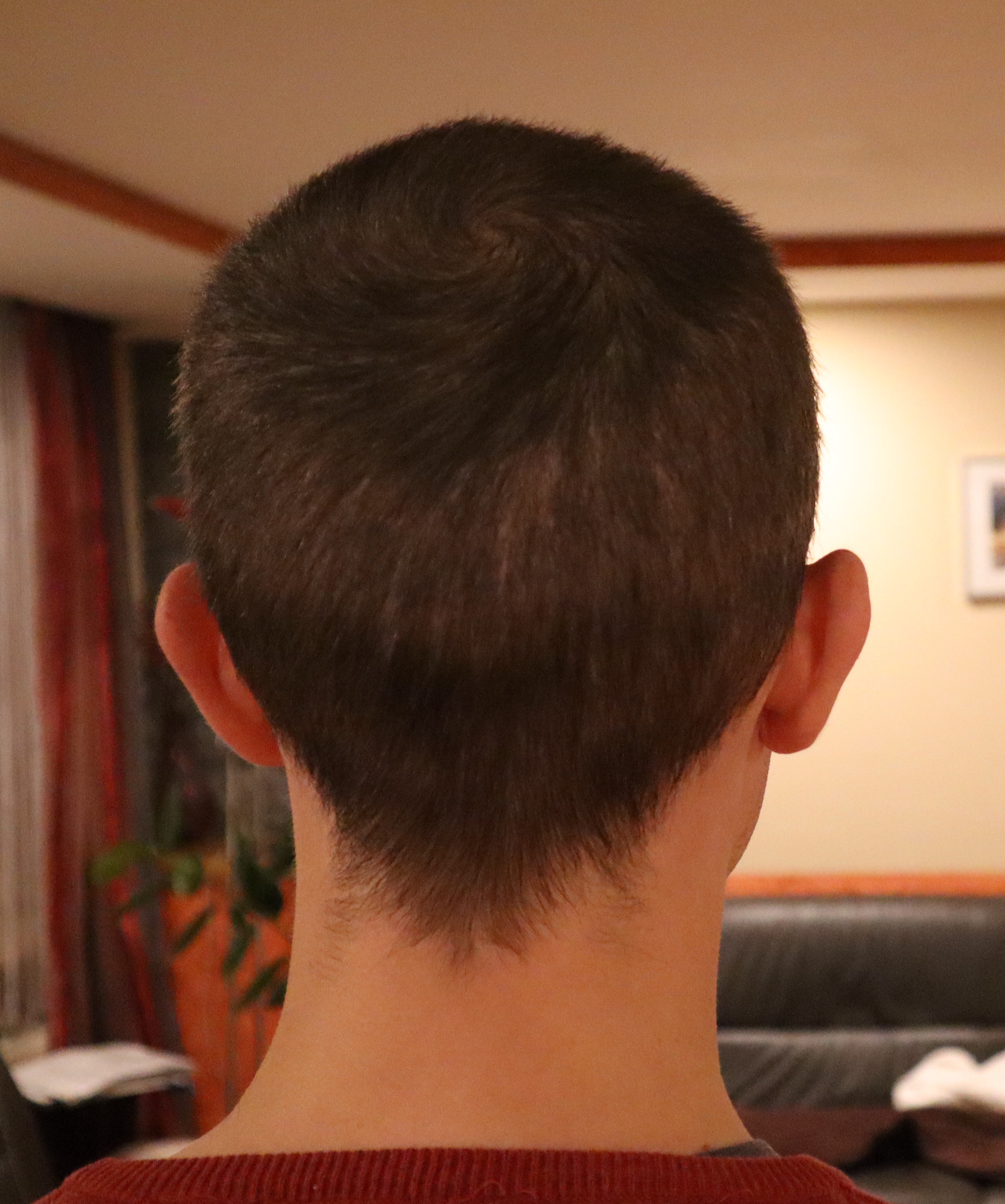 Vorne sehen die (früheren) Geheimratsecken super aus, aber weiter hinten ist es noch recht dürftig, hoffe da kommt ordentlich was! Smile