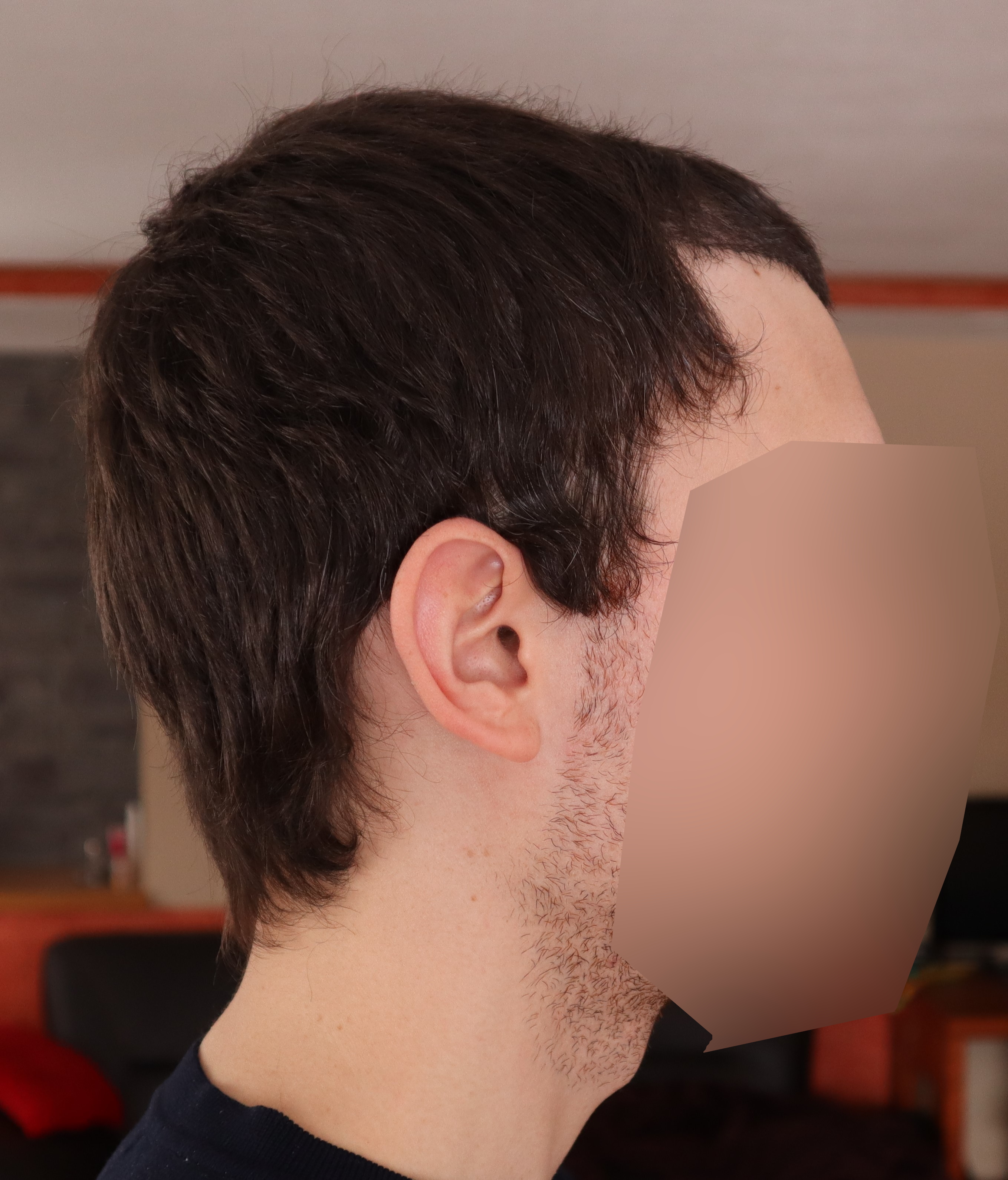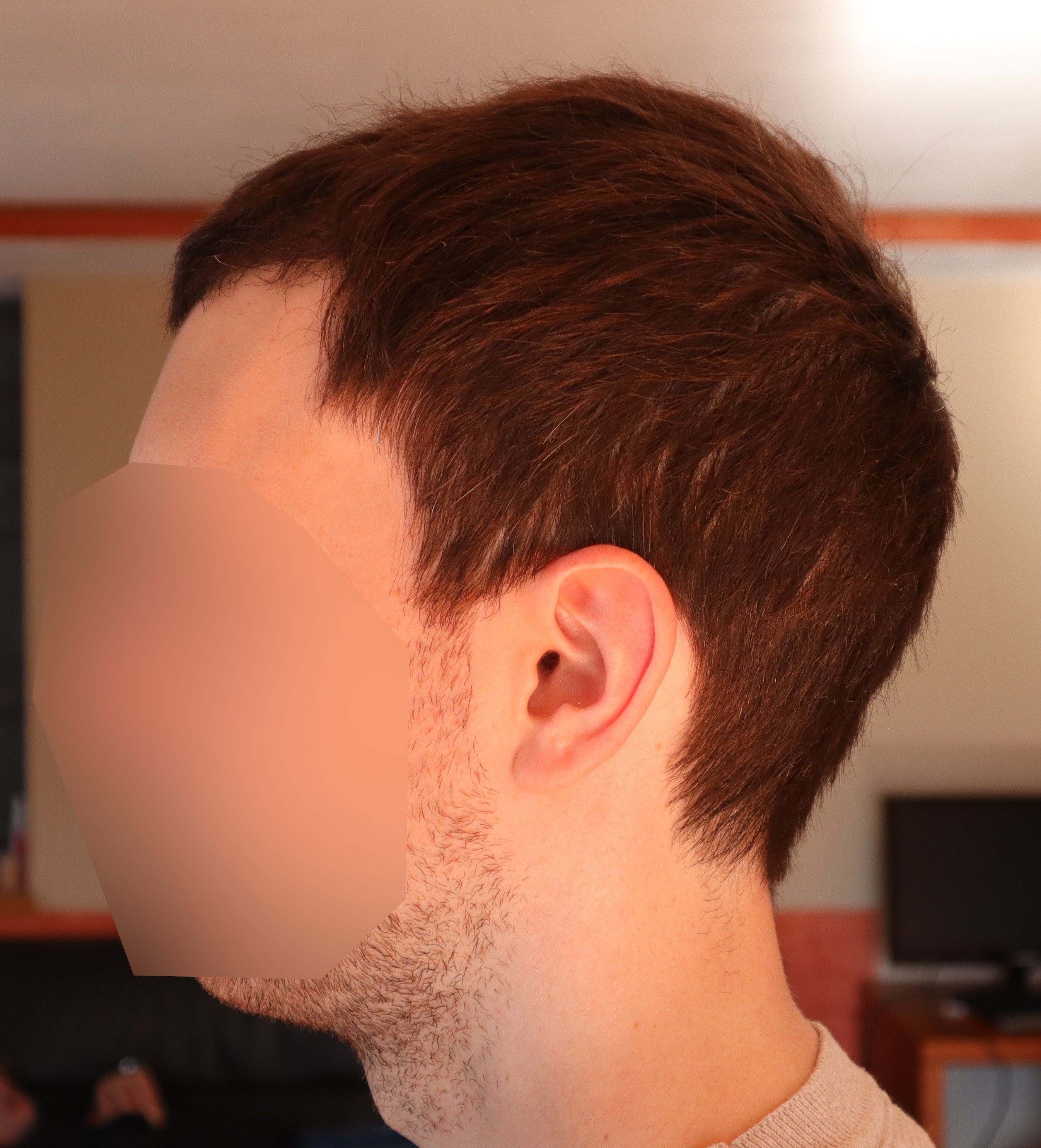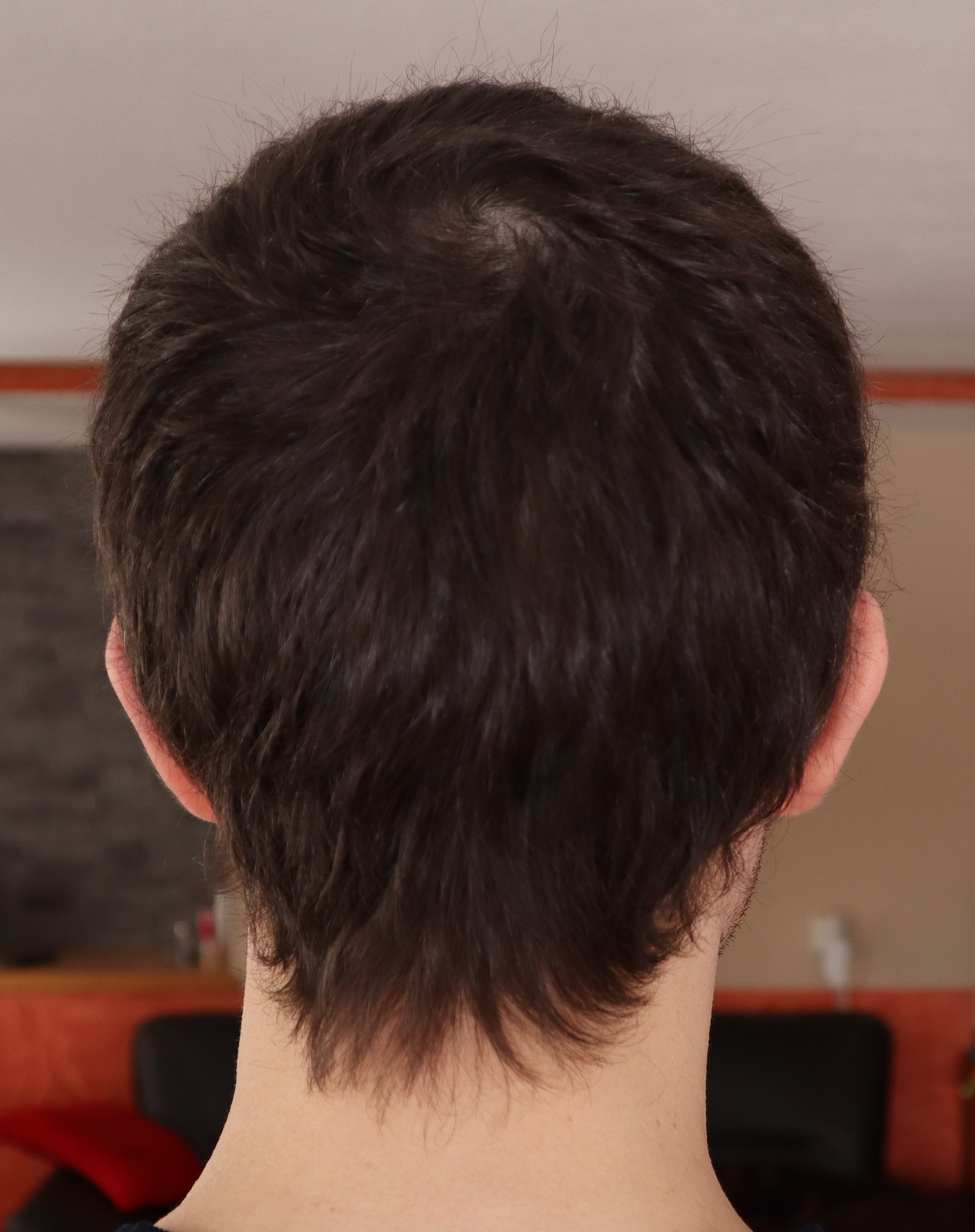 Es ist weiterhin dichter geworden, auf beiden Seiten fehlt hinten noch ein bisschen was. Außerdem wäre mir recht, wenn die Haare grundsätzlich noch dichter werden würden.