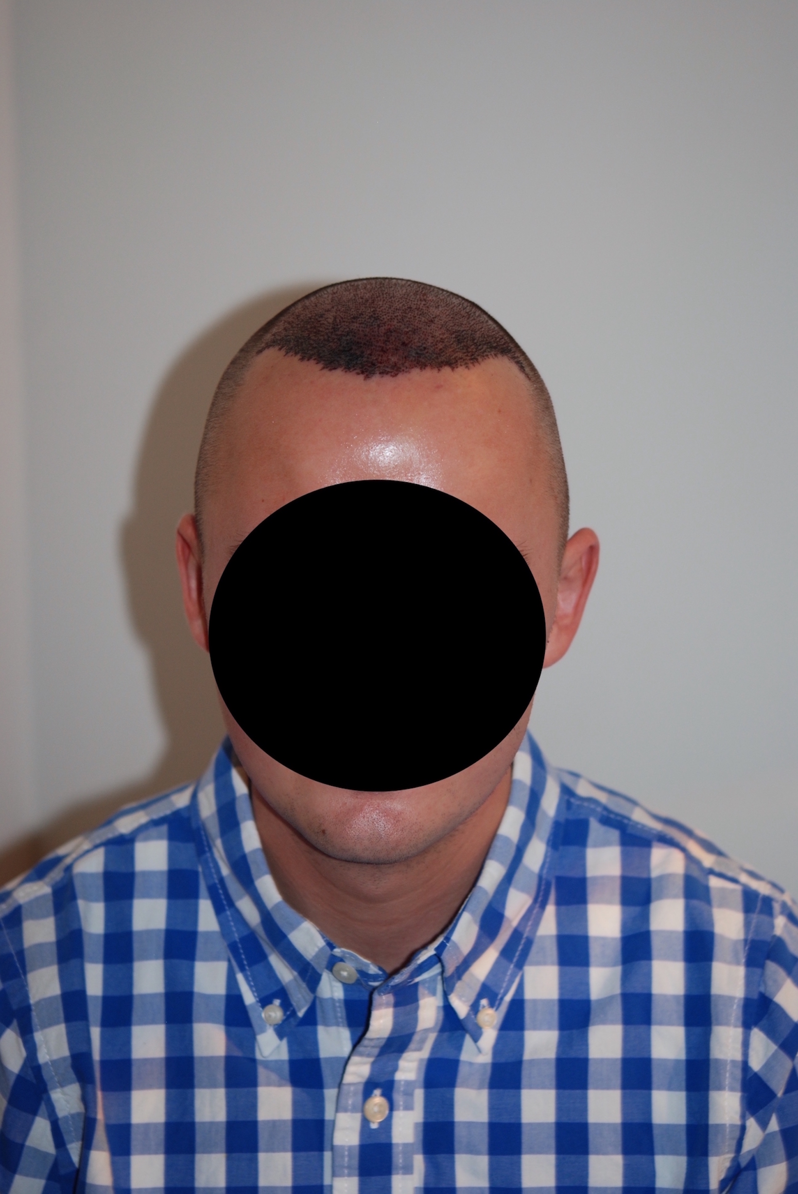 - Die Haarlinie ist ausreichend konservativ gewählt, so dass in diesem Fall vermutlich die Grafts nicht ausgehen, wenn die Tonsur offen bleibt --> Diese Ansatz habe ich hier bei mehreren Patienten gesehen, die Älter waren (sozusagen der Worst Case dieses Falls).