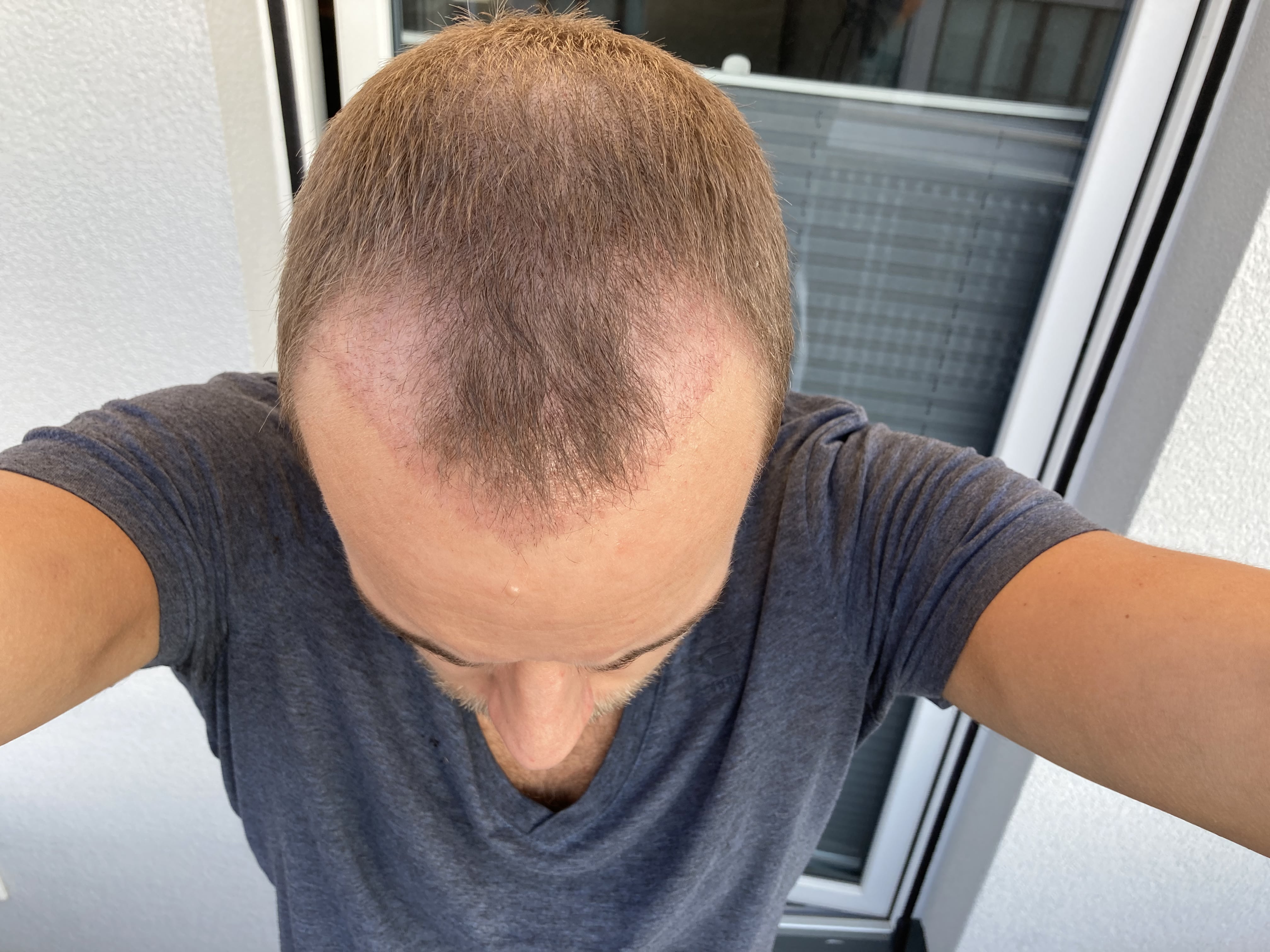 Hey sieht soweit sehr gut aus finde ich. Hatte Ende September meine OP mit 2450 Grafts. Bin jetzt in Woche 9 post OP und man sieht schon einige wachsen Smile Hoffe, dass es ab Monat 3 oder 4 dann richtig losgeht Smile