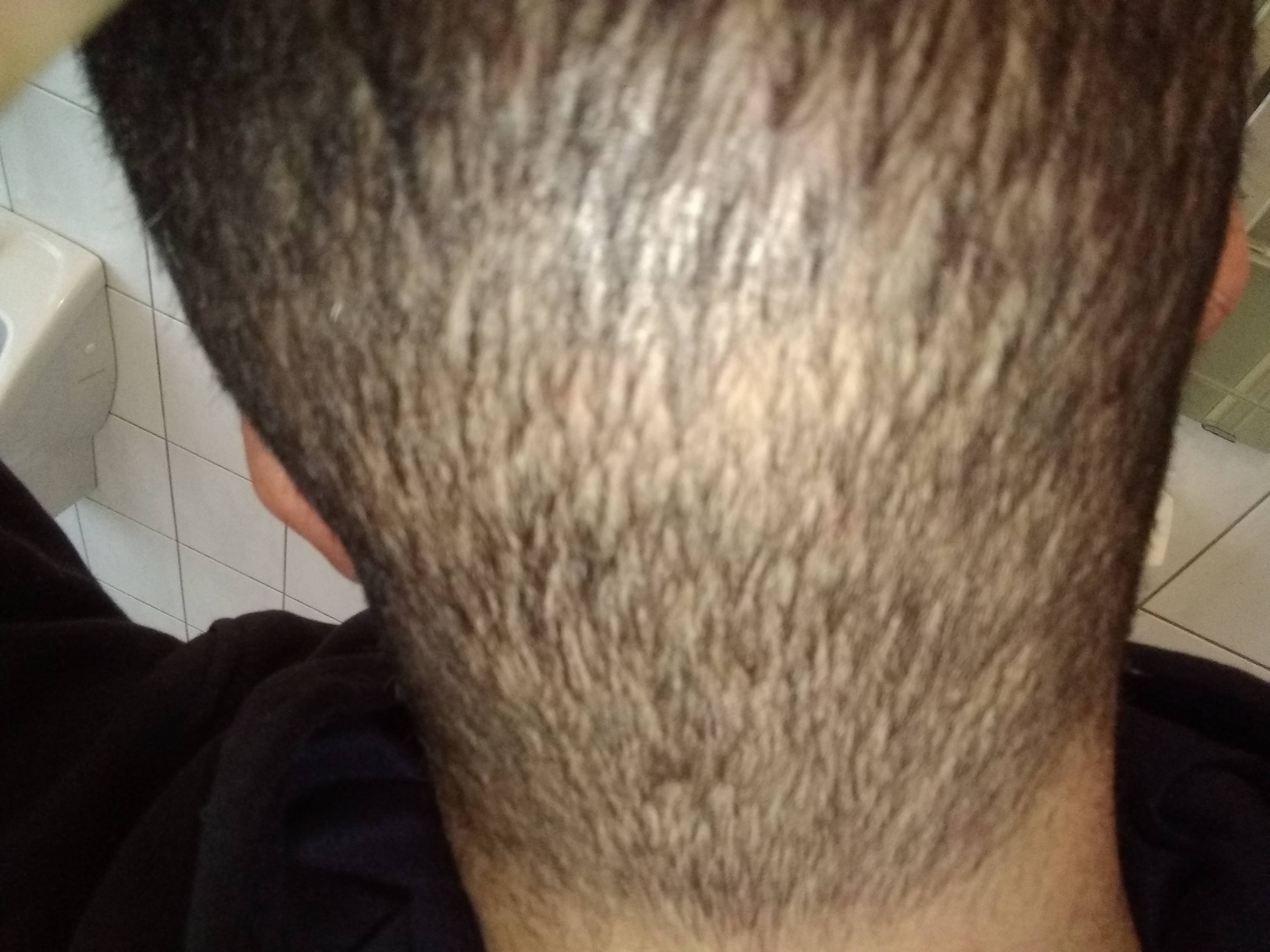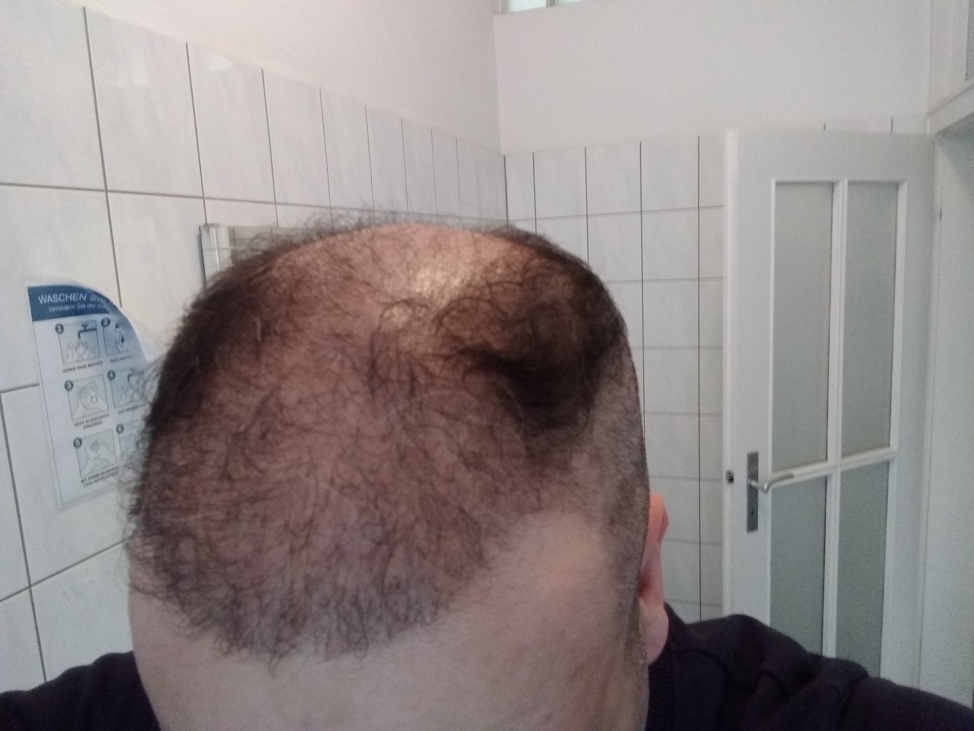 Danke für dein positives Feedback,wie bereits geschrieben habe ich die OP vor 7 Monate gemacht,muss noch 5 Monate warten bis das Endergebnis da ist und dann kommt die Verdichtung dran,hier ist noch ein Photo vom Spenderbereich vor der HT