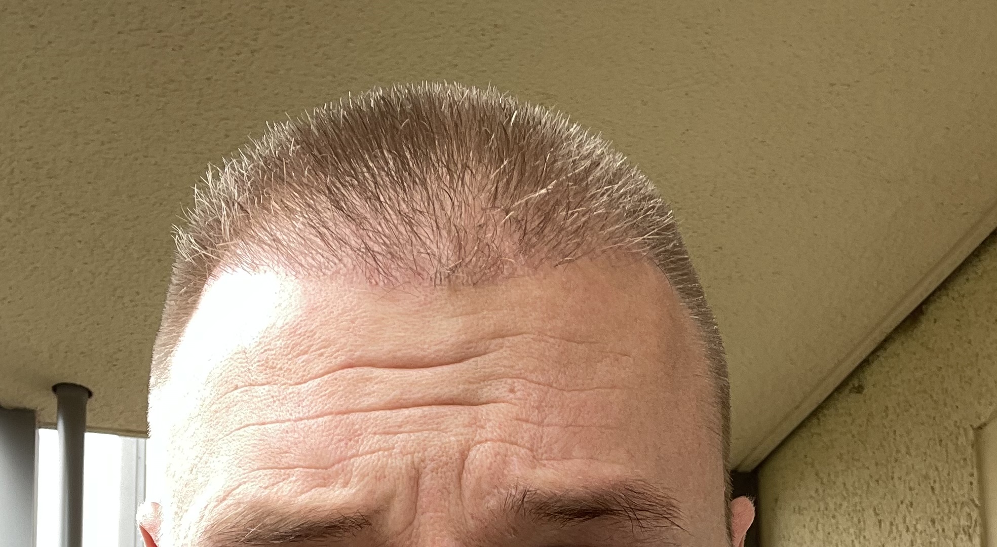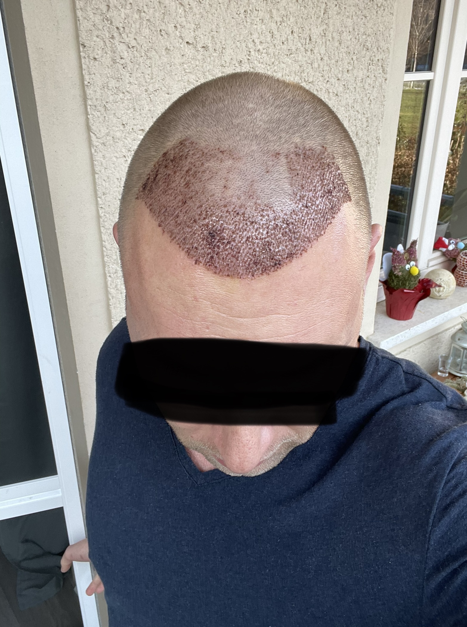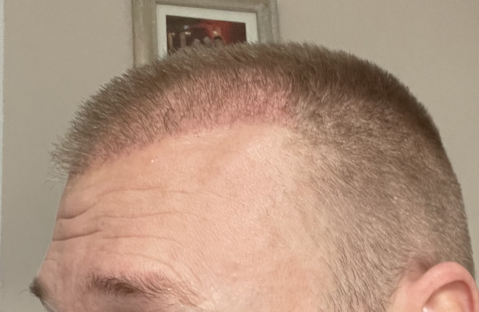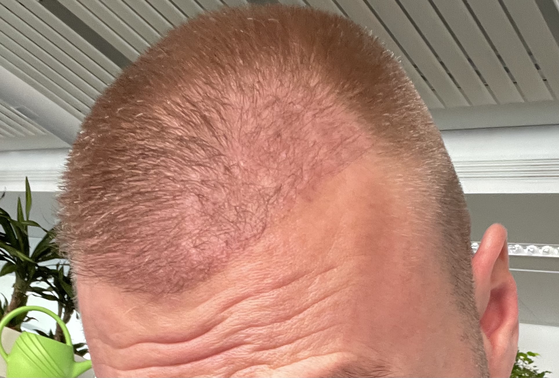 10 Wochen Post OP sind rum. Es sind nicht viel weniger Haare als beim letzten Mal aber auch nicht mehr. Die Rötung ist noch sehr präsent und ich hoffe die ugly duck Phase in den nächsten Wochen hinter mir lassen zu können. Anbei Fotos, Haare sind an den Seiten auf 2mm und oben 12mm gekürzt.