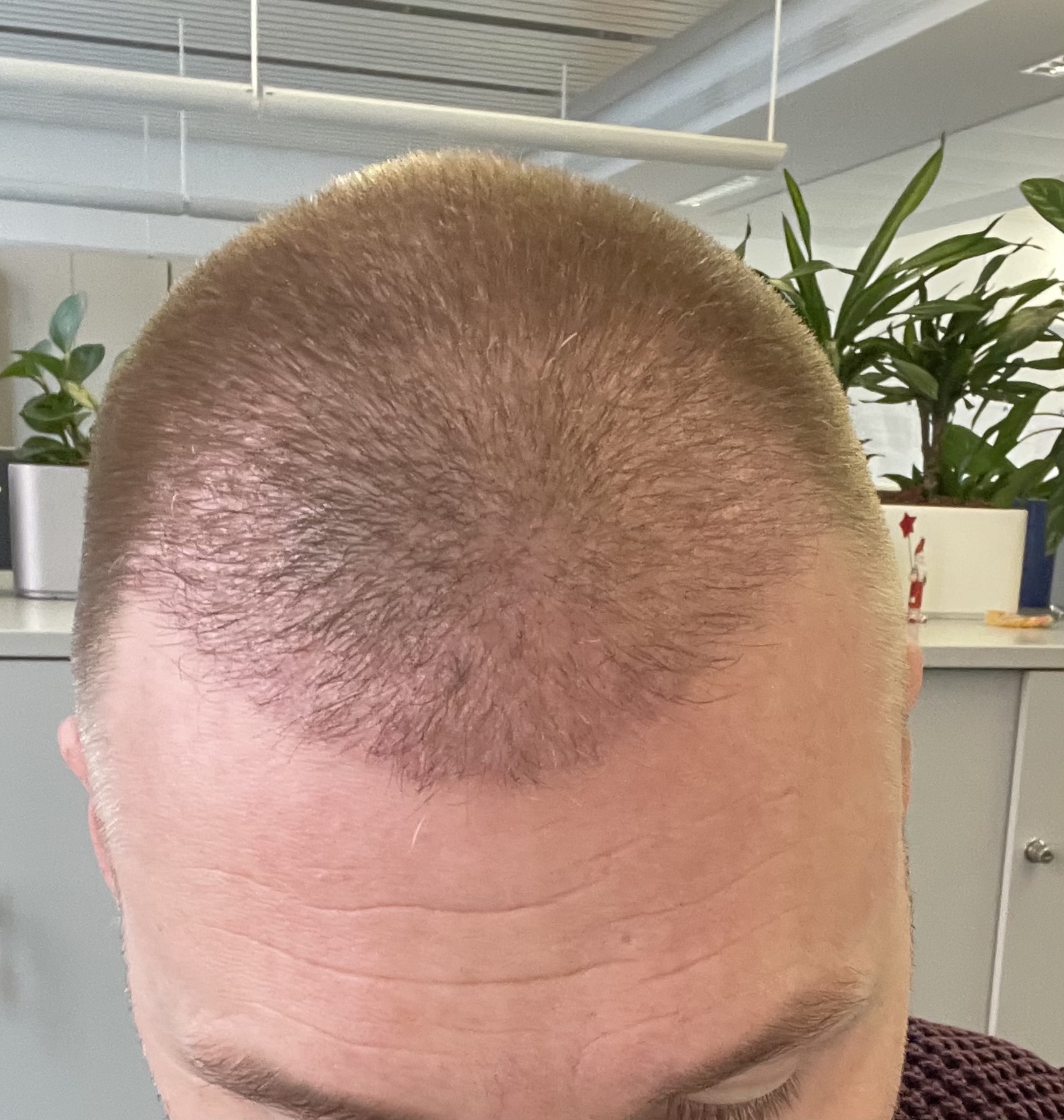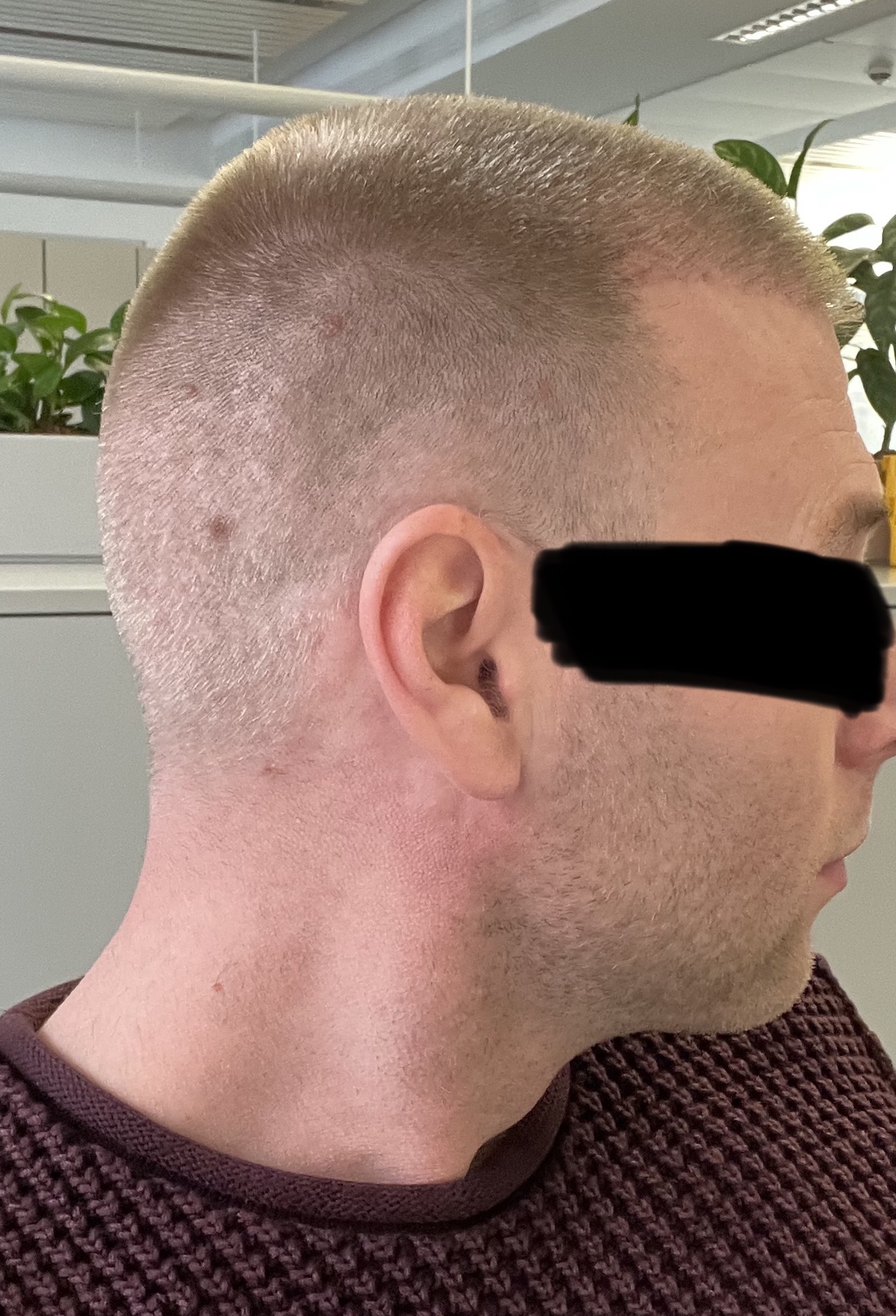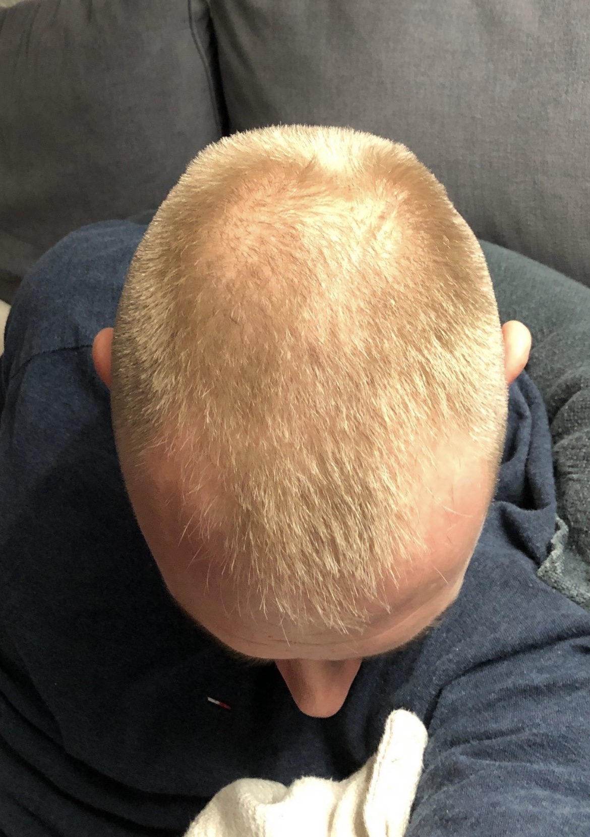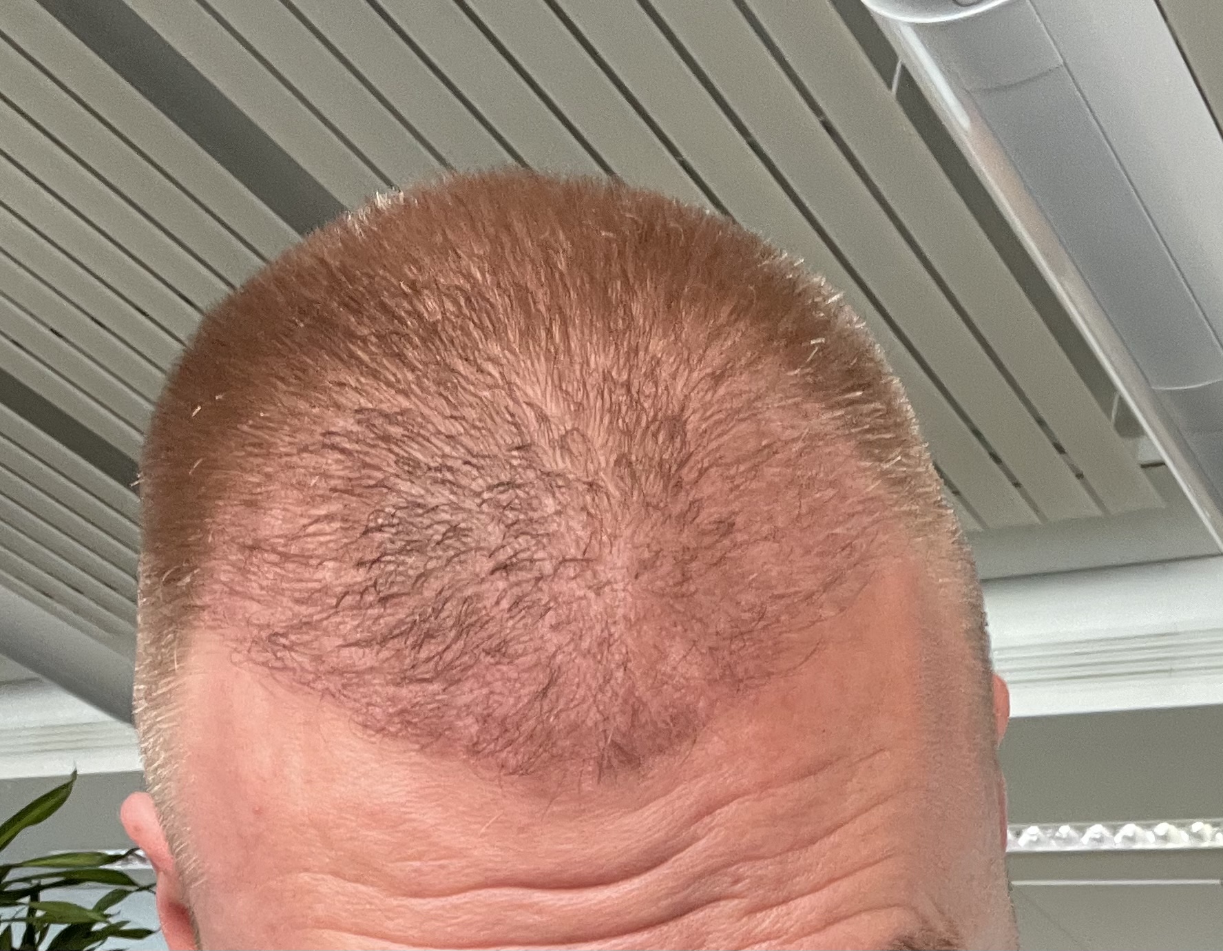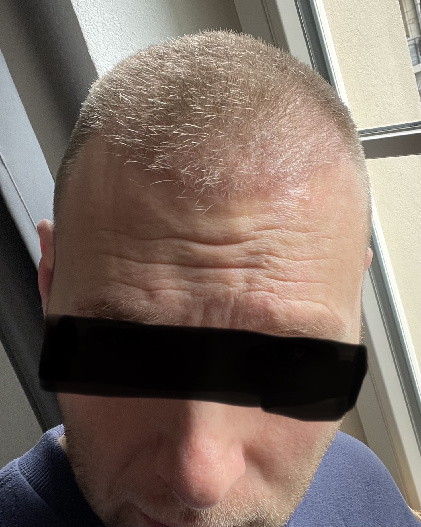 10 Wochen Post OP sind rum. Es sind nicht viel weniger Haare als beim letzten Mal aber auch nicht mehr. Die Rötung ist noch sehr präsent und ich hoffe die ugly duck Phase in den nächsten Wochen hinter mir lassen zu können. Anbei Fotos, Haare sind an den Seiten auf 2mm und oben 12mm gekürzt.