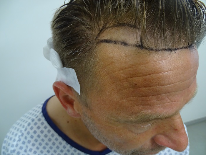 Vorher Fotos: Scharf (man erkennt Details), direktes helles Neonlicht, Haare nass (wirkt dann immer undichter), wahrscheinlich mit Spiegelreflex geschossen.