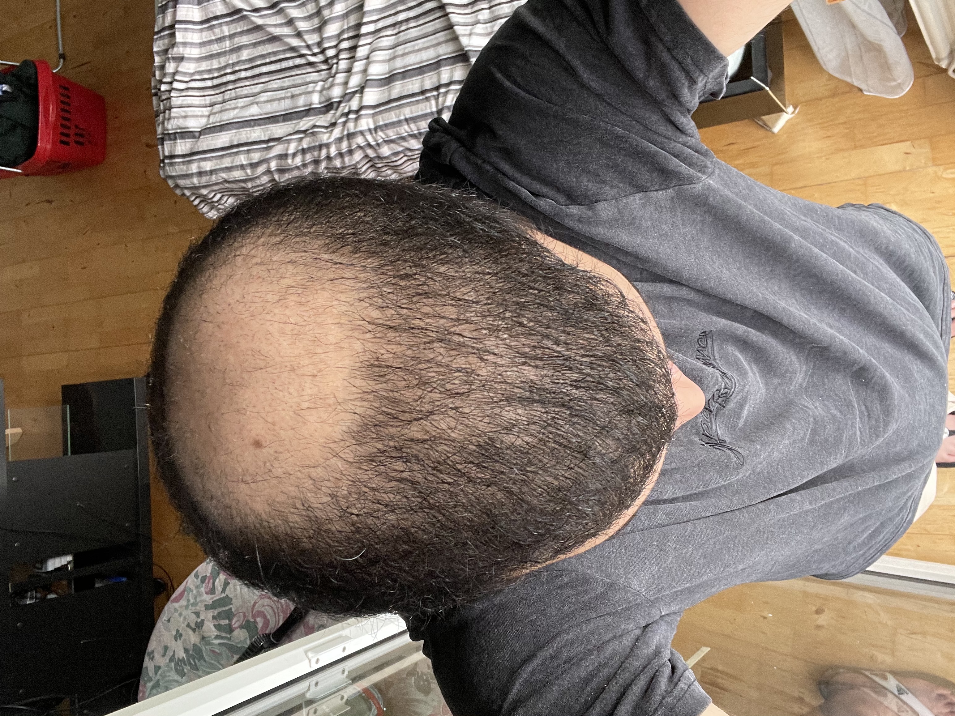 Man sieht im Gegensatz zu den letzten Fotos, dass an der Tonsur langsam die Haare wachsen und vorne auch langsam dichter wird.