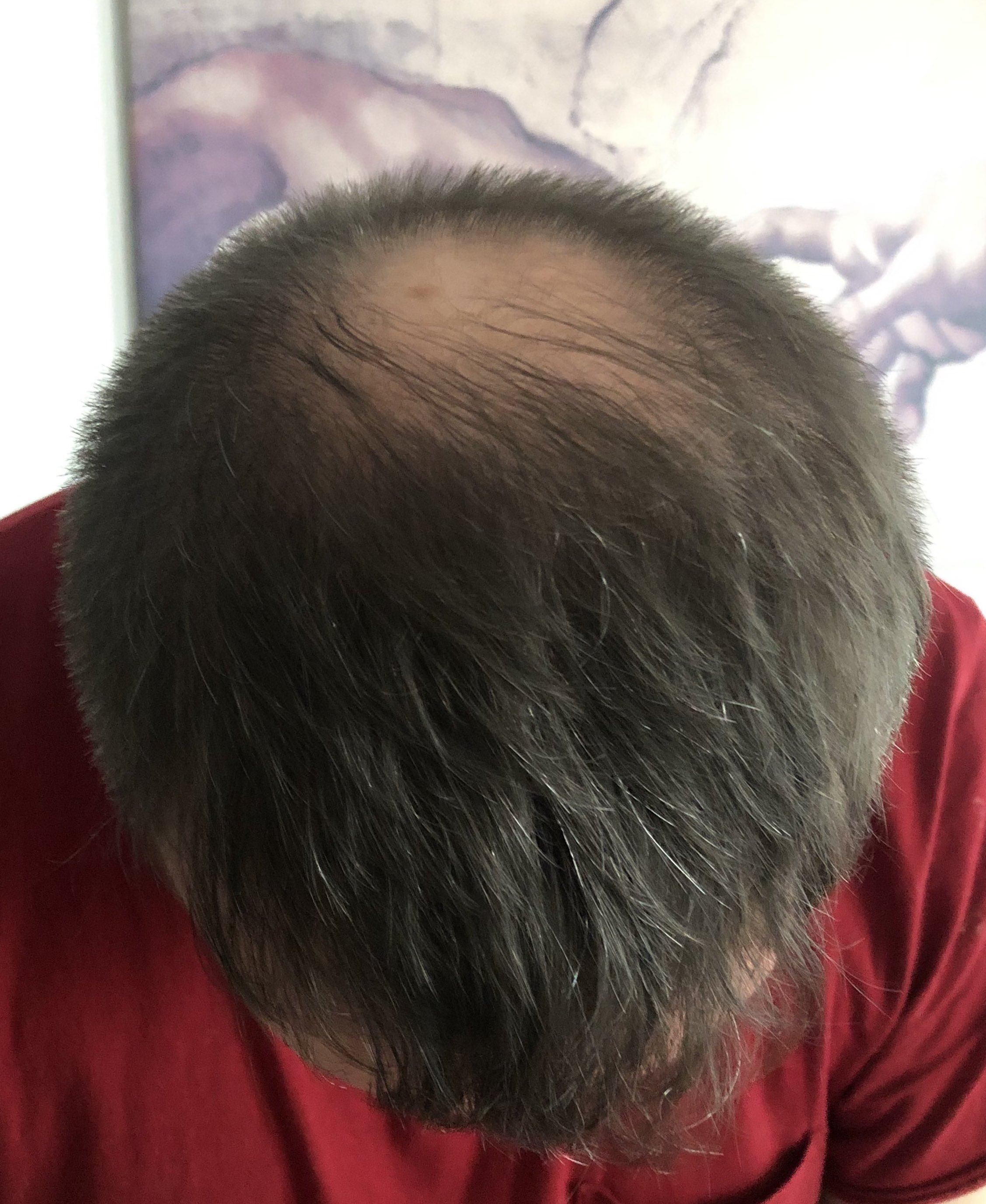 * Haarstatus in der Familie (Eltern/Großeltern): Vater hatte sehr dünnes Haar und mehr Haarausfall als ich. Großvater mütterlicherseits sehr früh eine Glatze