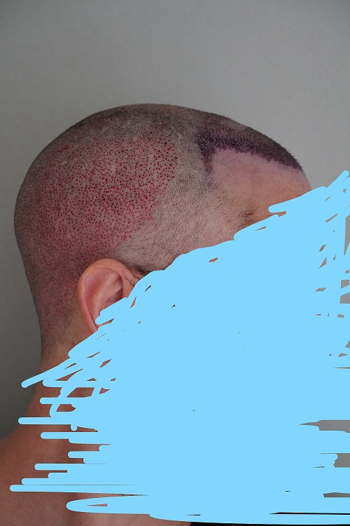 Hier muss man wissen, dass ich sehr krauses, lockiges Haar habe, und der Arzt wollte sichergehen, dass eine FUE-Operation möglich ist, indem er sich meine Spenderzone und die Qualität meiner Haare genauer ansah. Nach dieser Analyse schlug er mir eine grosse FUE-Sitzung mit etwa 4000 -4500 Grafts vor, verteilt über 2 Tage.