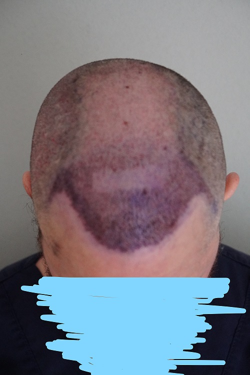 Hier muss man wissen, dass ich sehr krauses, lockiges Haar habe, und der Arzt wollte sichergehen, dass eine FUE-Operation möglich ist, indem er sich meine Spenderzone und die Qualität meiner Haare genauer ansah. Nach dieser Analyse schlug er mir eine grosse FUE-Sitzung mit etwa 4000 -4500 Grafts vor, verteilt über 2 Tage.