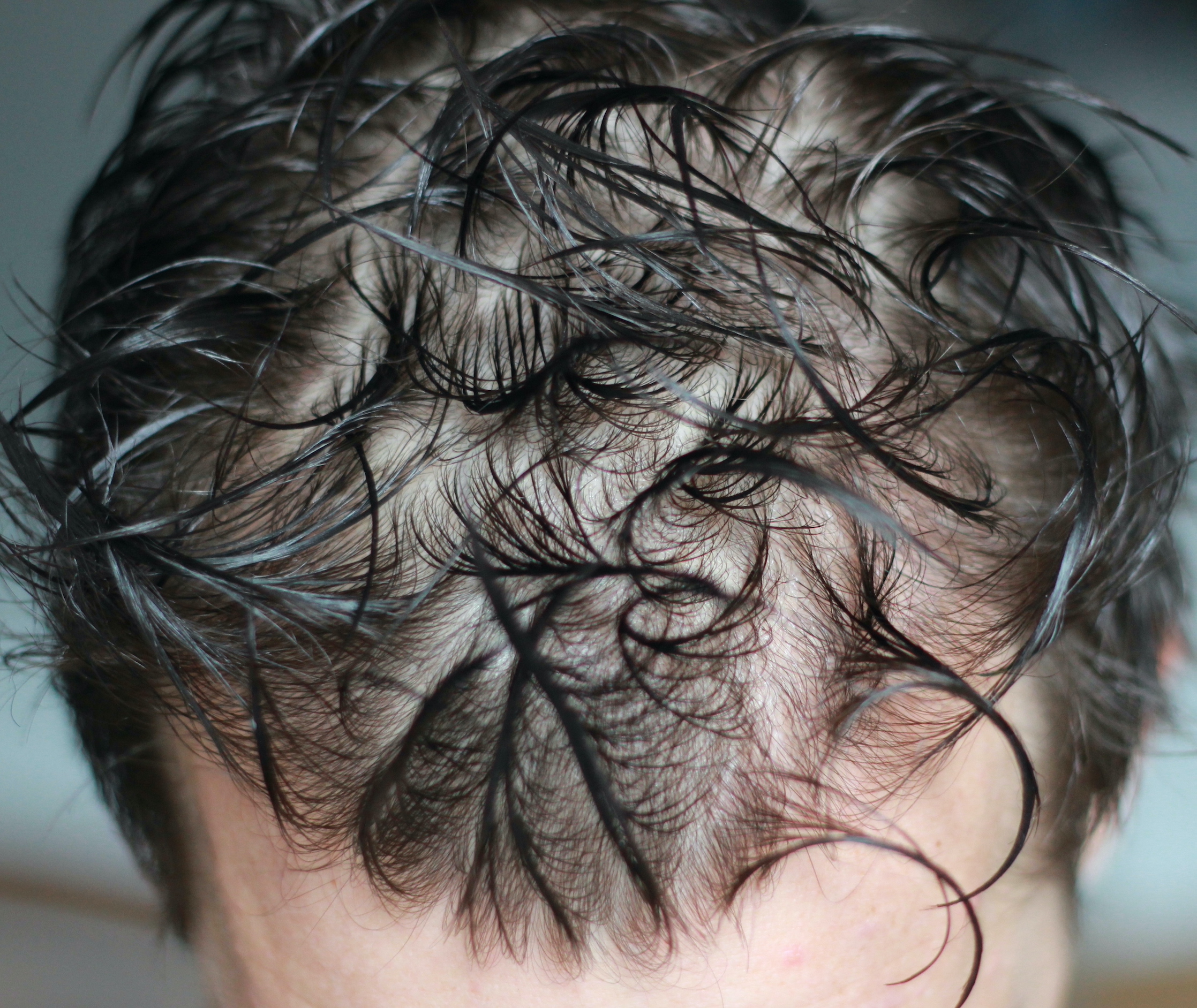 Anbei 2 Fotos von oben, kurz nach Haarwäsche, nicht gestyled.