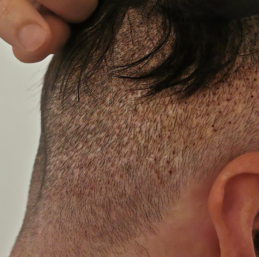 Generell habe ich in den fast 8 Wochen keinerlei Schmerzen, kein Jucken, keine Wärmeentwicklung, keine Taubheit, auch keine Pickel gehabt. Also innerhalb der 8 Wochen vielleicht 2 Pickel im Donor und im Empfängerbereich ein einziger Pickel, der auch sofort weggegangen ist (ohne irgendeine Komplikation oder Blutung).