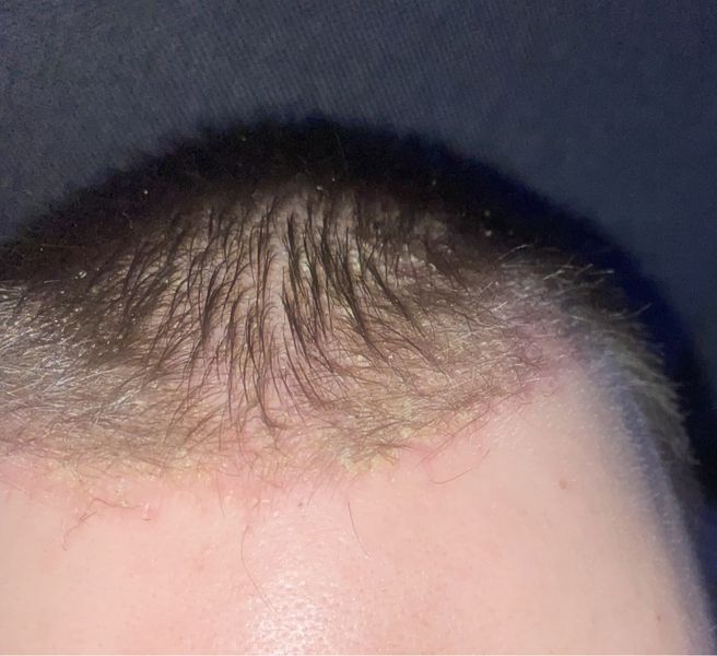 Grüße euch, mir ist direkt als die Krusten ab waren aufgefallen, das ich eine Art Schuppen auf der Kopfhaut habe, vorallem am Haaransatz in der Mitte. Nach dem Duschen war es immer gut zu sehen, sah aus wie weiße, feuchte hautfetzen.