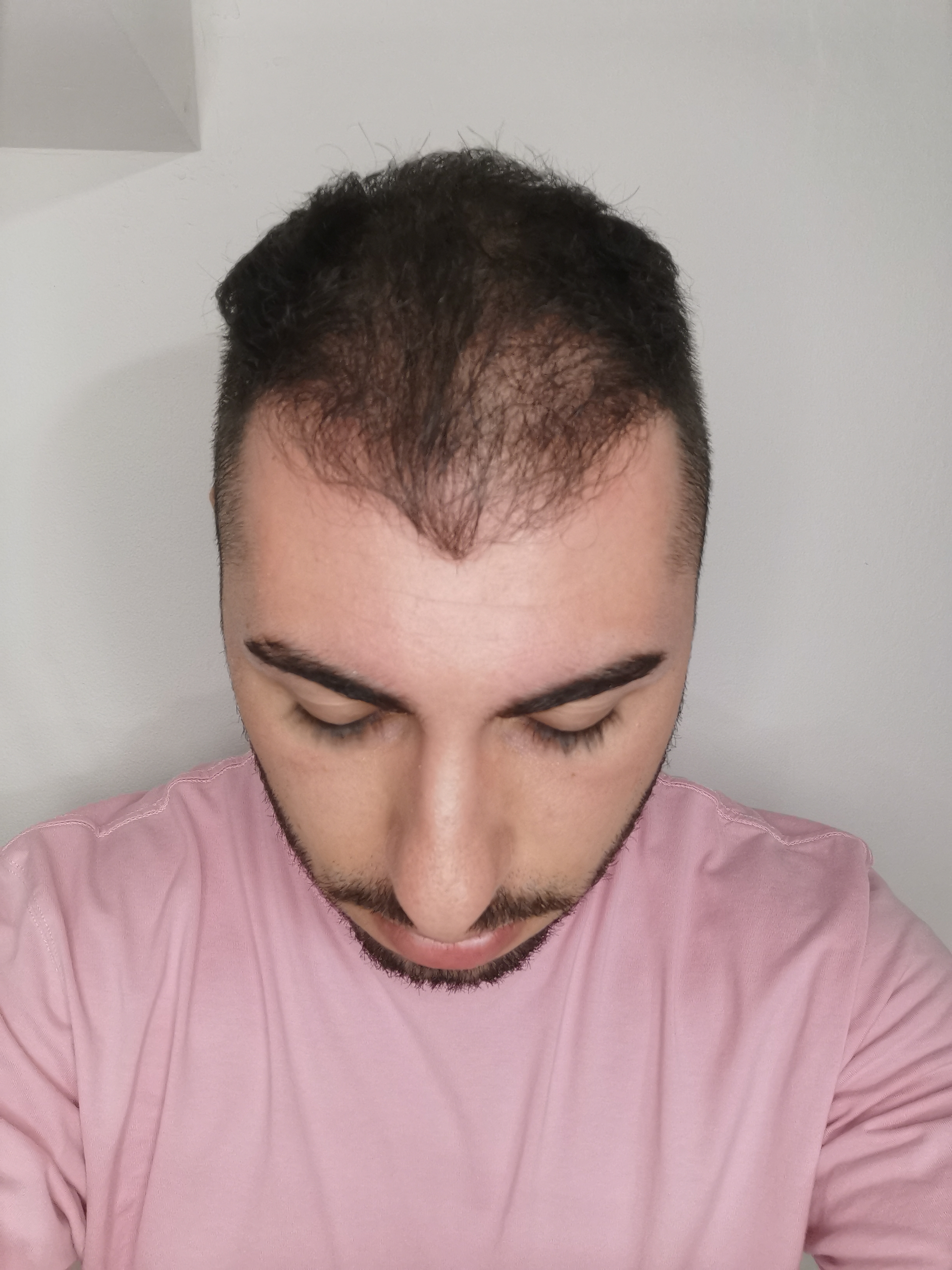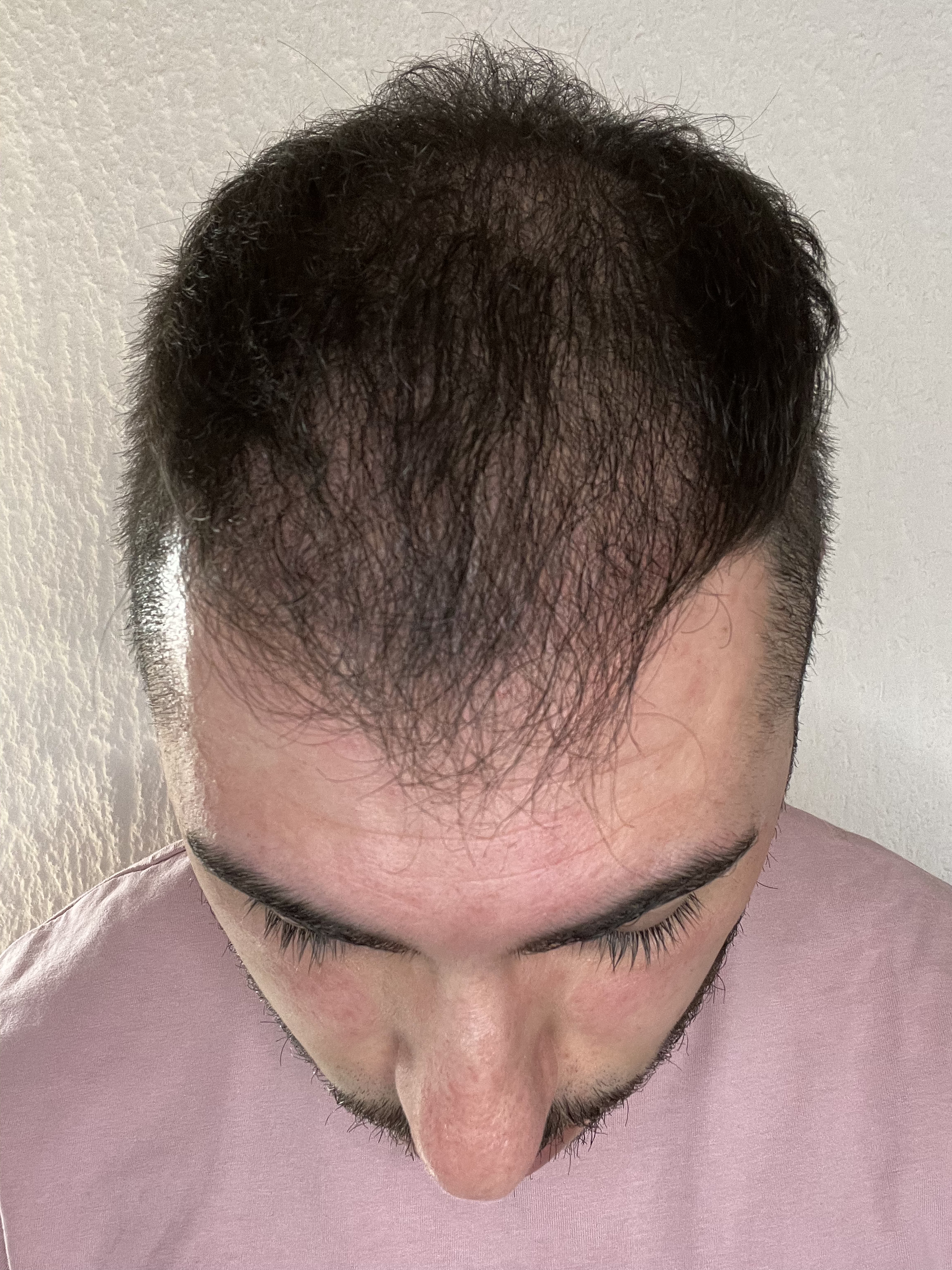 Ich bin bisher sehr zufrieden mit meiner jetzigen Haarsituation. Zum Vergleich seht ihr ja auf dem einen Bild, dass ich kaum/keine Haare im vorderen Bereich hatte. Das Verdecken der kahlen Stellen vorne hat endlich ein Ende. Wobei hinten noch wie zu sehen noch recht kahl ist – da wurden aber auch nur 400 Grafts transplantiert.