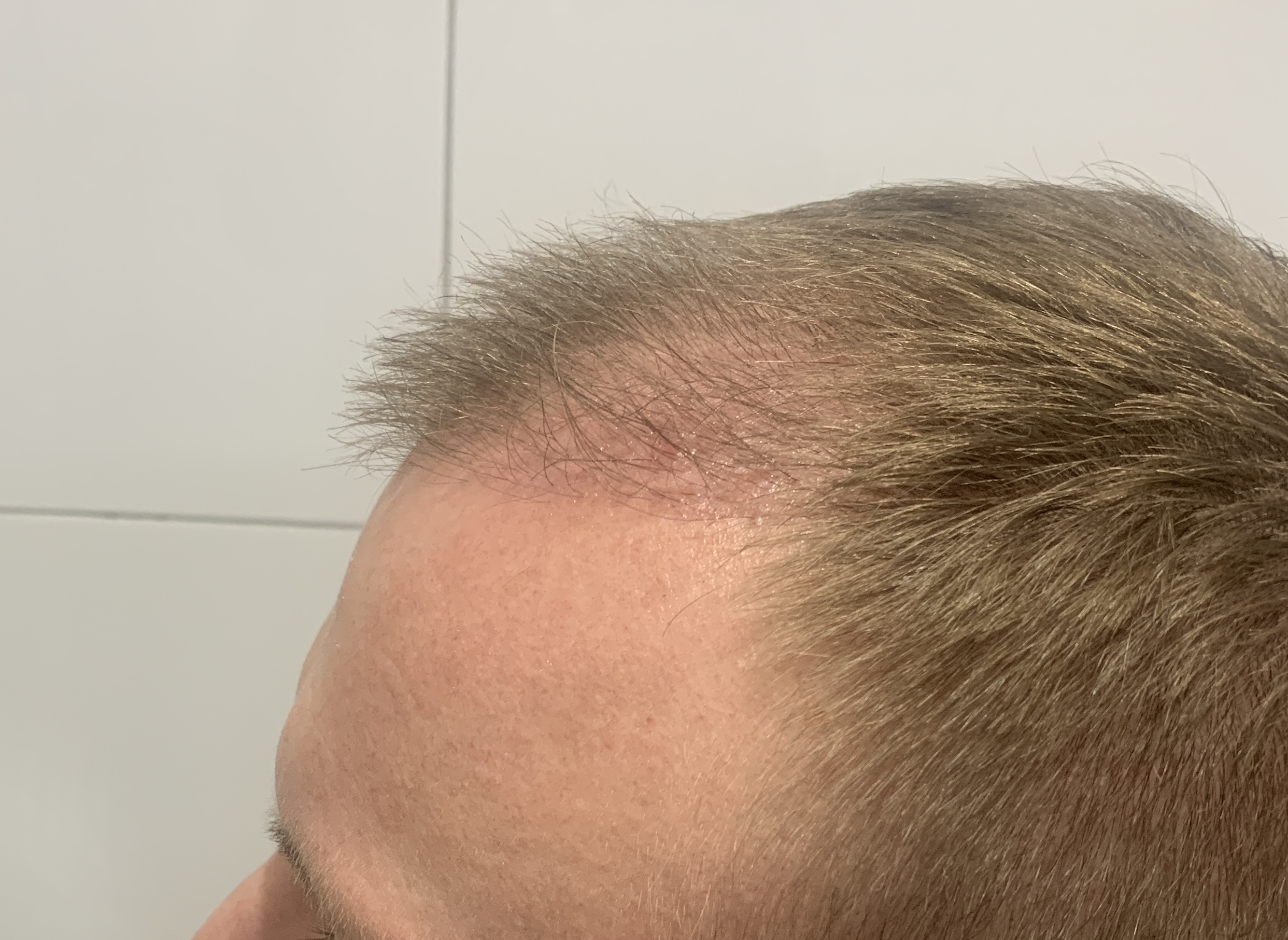 Die nette deutschsprachige Assistentin meinte, ich soll noch einige Monate warten, dann wird die Situation nochmal bewertet. Ich vermute, dass bei der OP in diesem Bereich zu wenig Grafts eingepflanzt wurden.