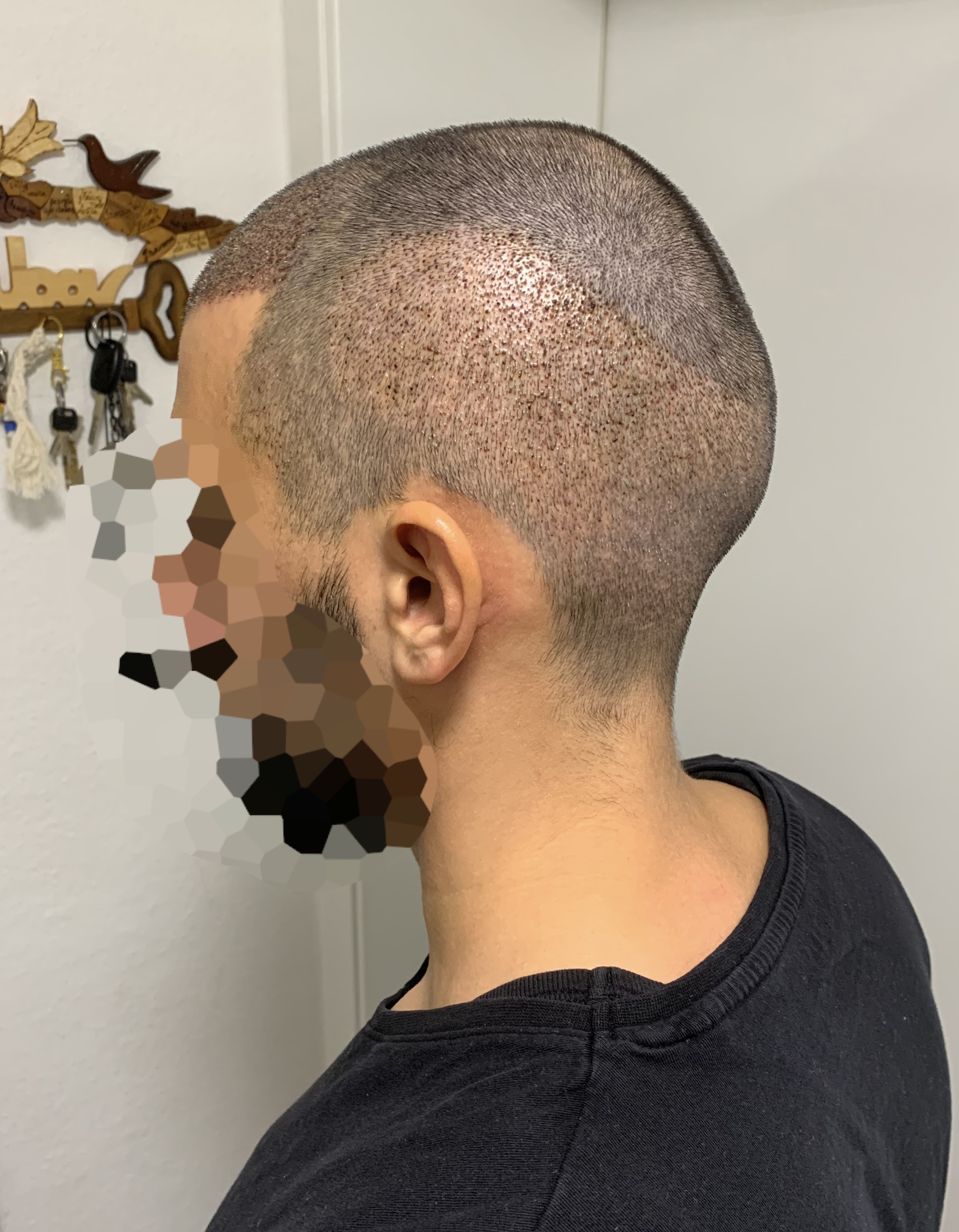 Der Spenderbereich ist bei sehr kurzem Schnitt noch leicht zu erkennen, jedoch ist auch das besser geworden.