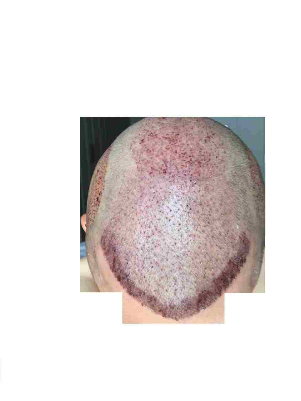 Dementsprechend sind die Haare noch kürzer, da sie bei der zweiten HT ja erneut abrasiert werden mussten.