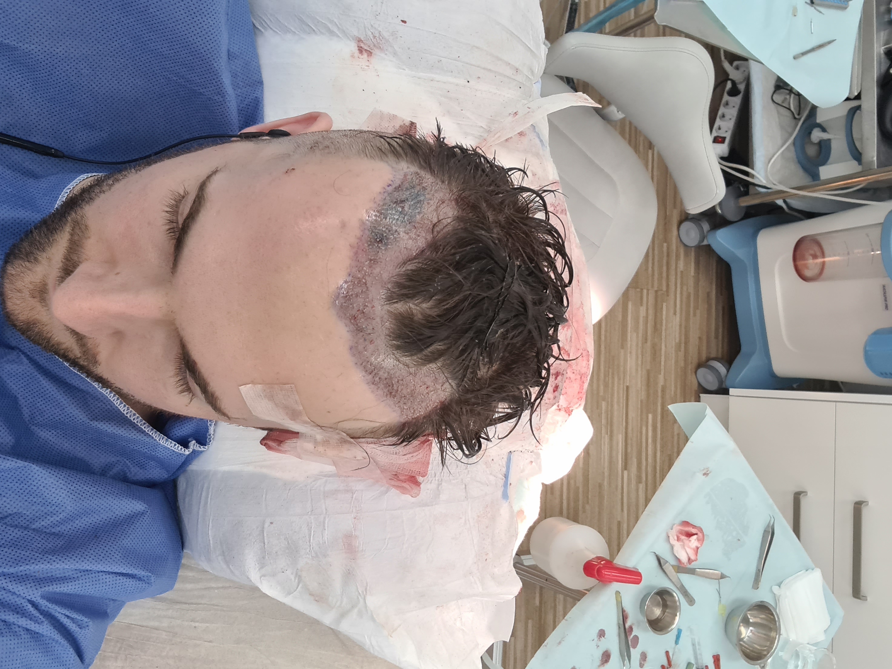 1500 Grafts waren verabredet, 1680 hat er am Ende verpflanzt. GHE waren das Topic. Dr Ayoub hat wenig geredet während der OP, aber war fast durchgängig dabei bzw. hat selbst gearbeitet. Komplette Entnahme gemacht, Frontlinie alleine.