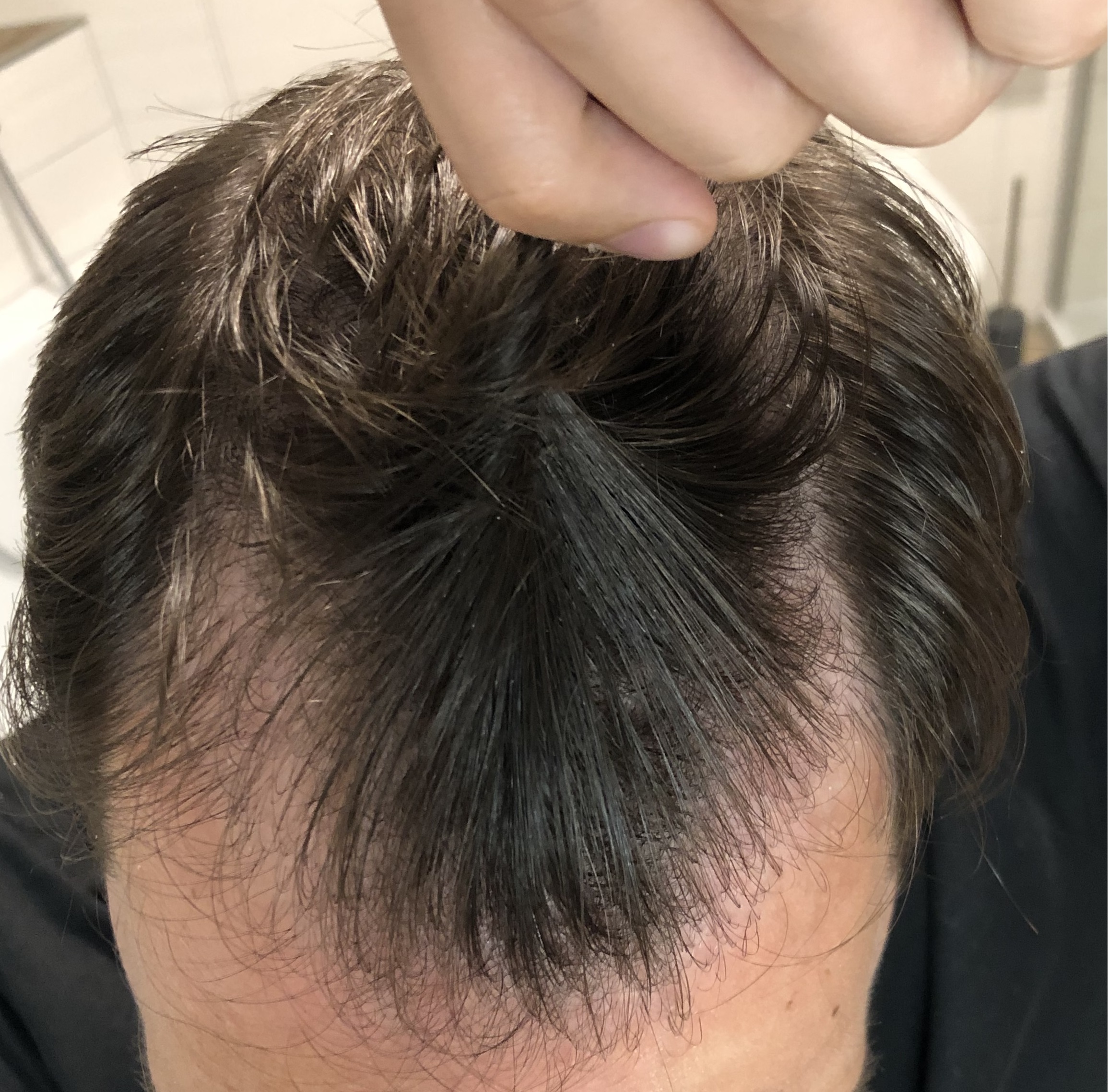 ich hatte oben kaum Haare. Hat sich auch nicht viel geändert aber vorne sieht es schon ziemlich ok aus.