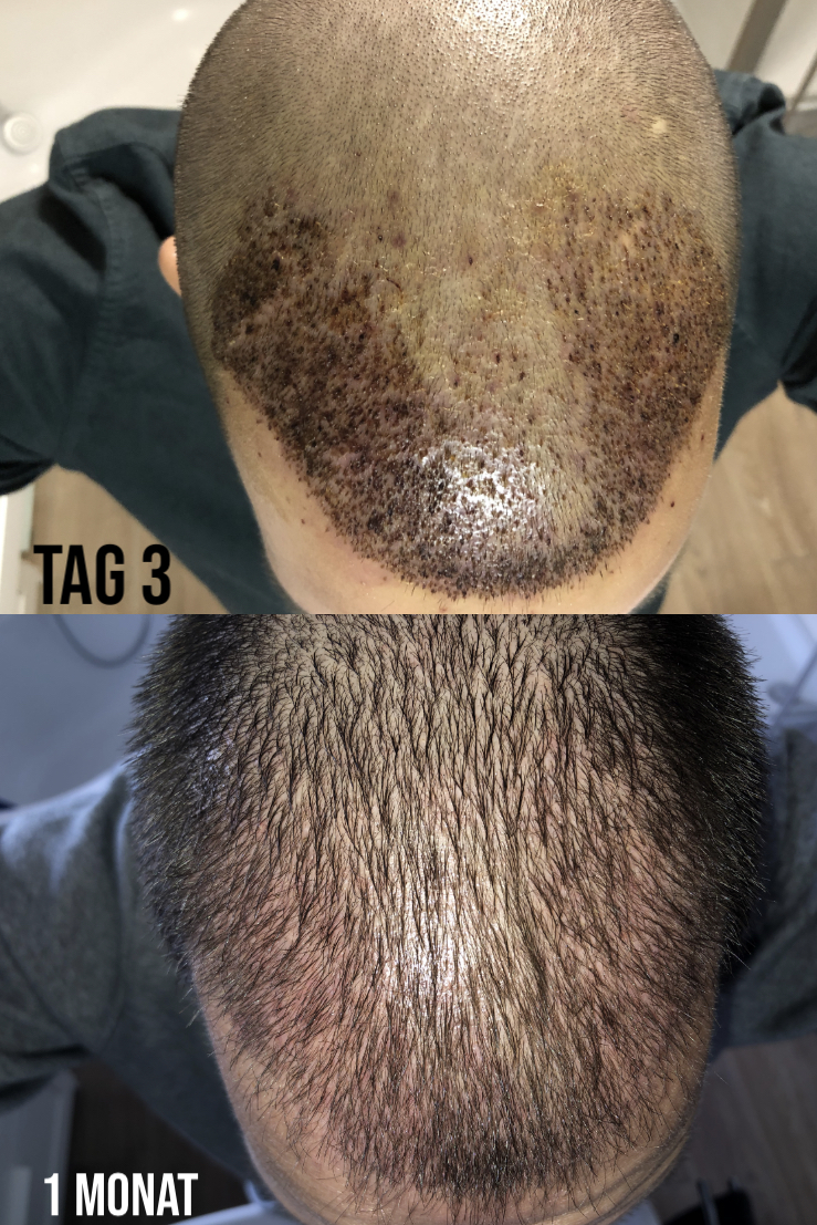 in der 5. Woche habe ich allerdings einen ziemlichen Pickel Befall am Spenderbereich gehabt. Ich habe mich bei meiner Ansprechpartnerin von der Klinik gemeldet und sie hat mir eine Creme empfohlen die ich beim Dermatologen verschreiben kann. Diese musste ich 2 x am Tag eincremen und das Problem war dann nach 4-6 Tagen wieder behoben!