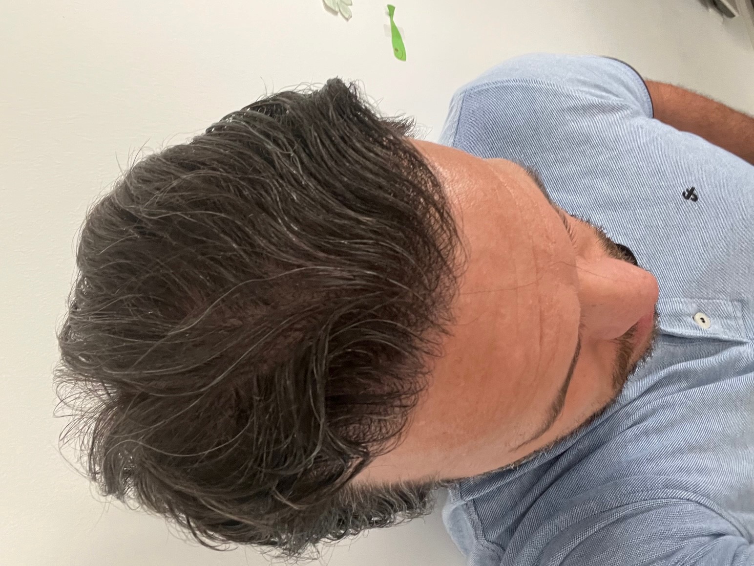 Mein Shock-Loss ist nach Auskunft der Klinik vorbei und so langsam merke ich, dass neue Haare an Stellen sprießen, wo vorher länger keine mehr waren. Gerade wenn die Haare trocken sind und man seitlich oder von vorne drauf blickt sieht, dann sieht man, so zumindest meine Interpretation, einen langsamen Fortschritt. Sobald die Haare nass sind, oder die Lichtverhältnisse ungünstig sieht man, dass die Haare noch nicht überall gewachsen und teilweise noch sehr dünn sind. Ich hoffe, dass sich das bald ändert, aber ich weiß auch, dass ich erst im vierten Monat bin und deshalb ja noch ein wenig Zeit ist.