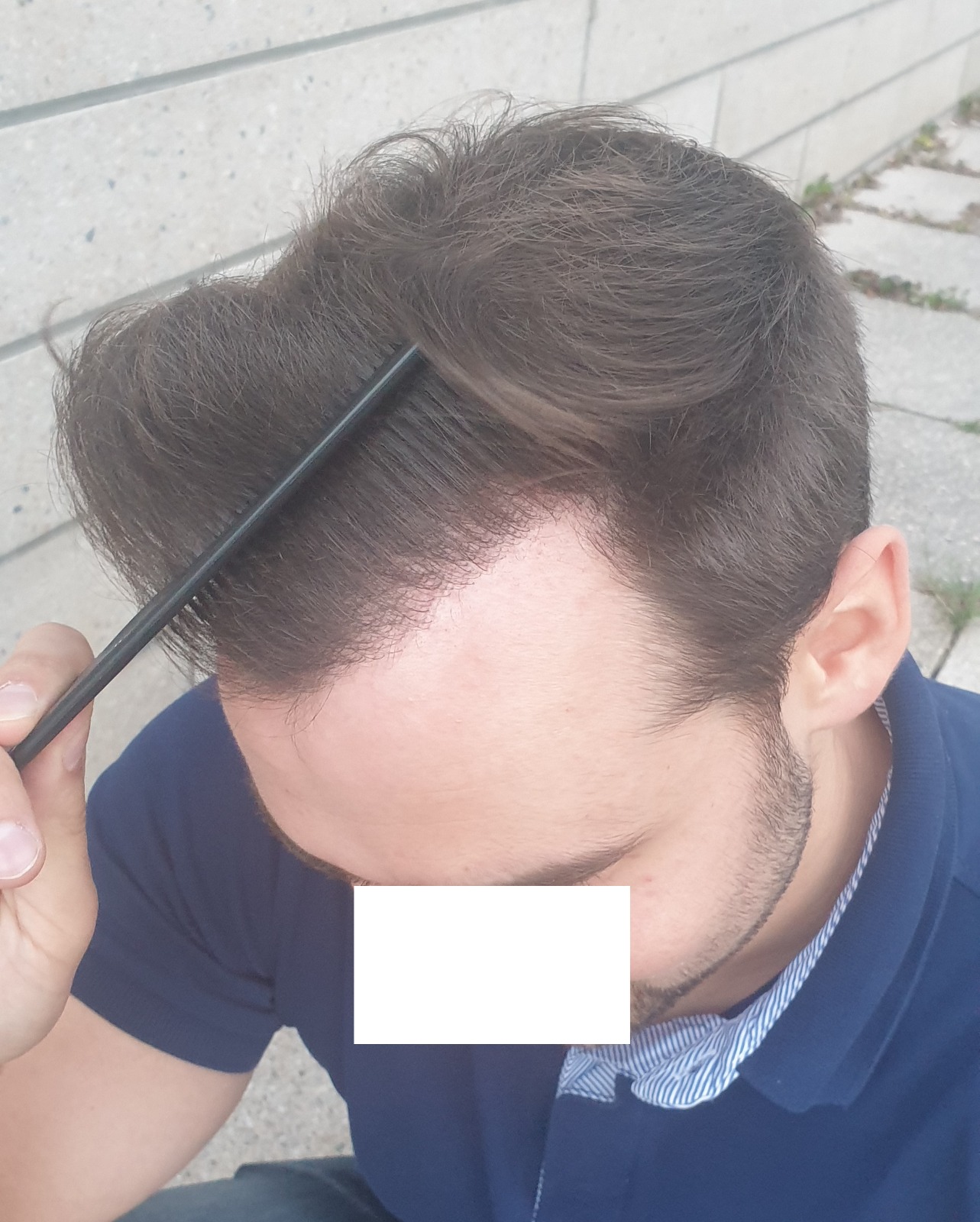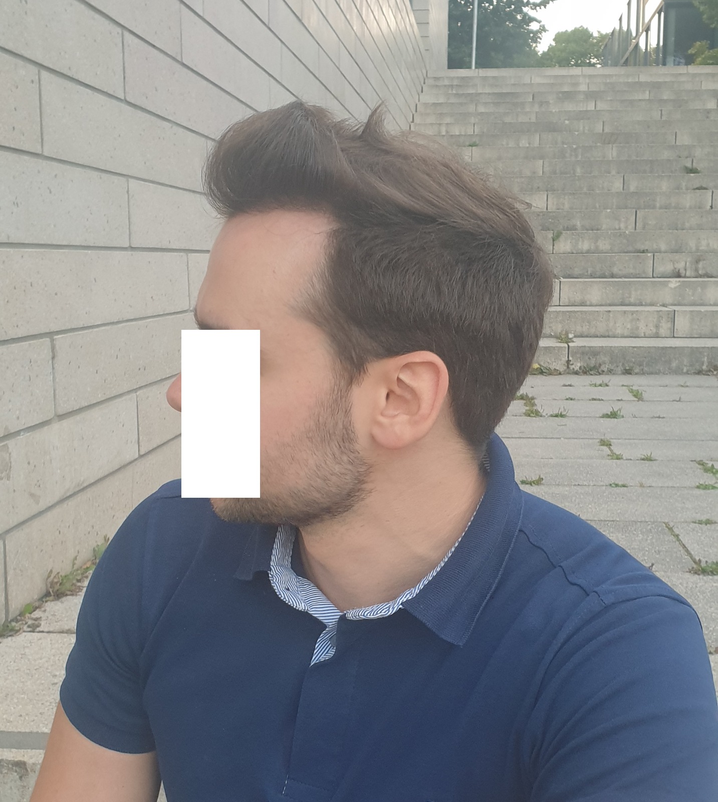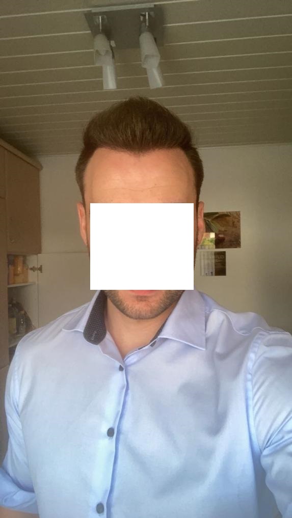 Der Transfer am Flughafen und die Abholung morgens vor der OP war gut organisiert und Herr Weber war immer erreichbar über WhatsApp oder auch telefonisch. Vor der OP haben ich mit Herrn Weber und Herrn Demirsoy zusammen meine Haarlinie besprochen. Ich hatte mein Handy voll mit Fotos von meinen Onkels und Opas, um ein Muster meines Haarausfalls ungefähr vorherzusagen. Ich zeigt auch Bilder von mir mit 18 und meinen ursprünglichen Geheimratsecken. Mein Wunsch war es diesen Status wieder zu erhalten, da ich damals auch nie Probleme mit den Ecken hatte. Eine zu gerade Haarlinie sähe bei mir auch komisch denke ich. Während der OP habe ich mich sehr gut aufgehoben gefühlt. Ich fands auch cool, dass Herr Demirsoy regelmäßig nach meinem Wohlbefinden gefragt hatte und mir dabei auf die Schulter klopfte. Mir wurden 3528 Grafts verpflanzt. Am Morgen nach der OP wurde mir die Haarwäsche erklärt und alle weiteren Schritte für die nächsten Wochen. Ich habe mich strikt an die Vorgaben gehalten, um das bestmögliche Ergebnis zu erzielen. Ca. bis zum 4. Monat ist erstmal nichts bis wenig passiert bzgl. Wachstum. Ab dem 5. Monat ca. konnte ich langsame die Haare stylen, diese waren aber noch etwas undicht. Ab dem 6. Monat wurden diese dichter und dichter, sodass ich langsam wieder eine Frisur tragen konnte.