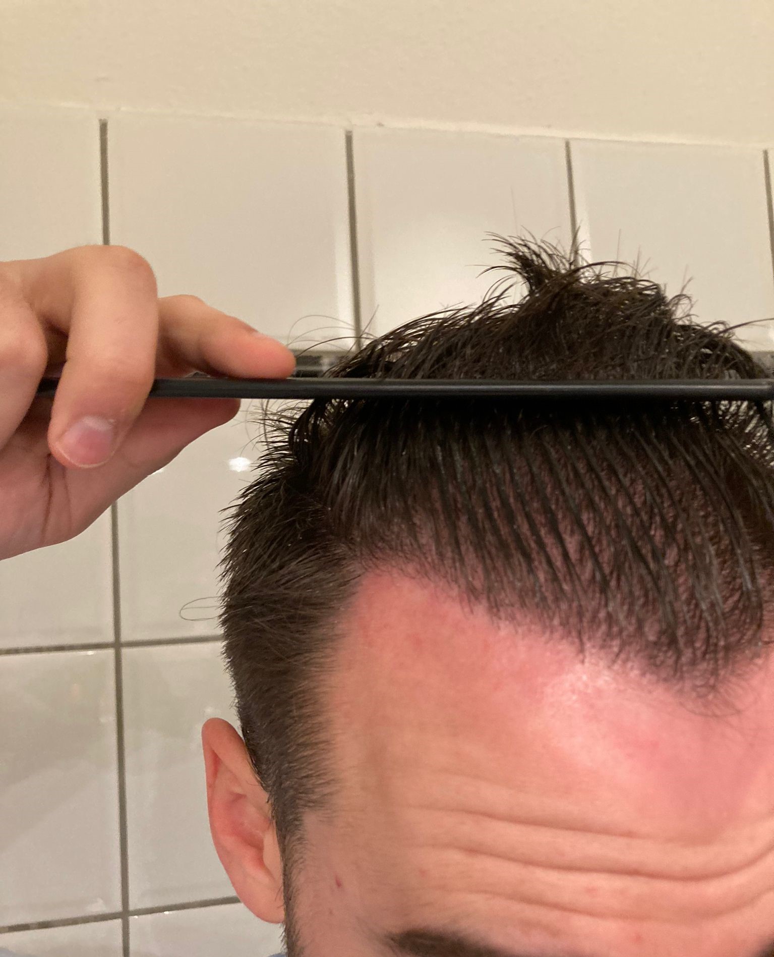 Also es sind 3500 Grafts und bei den Nachher-Fotos habe ich kein Streuhaar benutzt. Ich poste nochmal Bilder nass und zurückgekämmt unter Badezimmerlicht. Das sollte das ein realistisches Bild von dem Ergebnis geben Smile