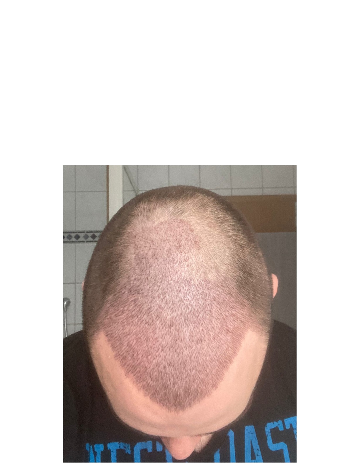 Also es sind 3500 Grafts und bei den Nachher-Fotos habe ich kein Streuhaar benutzt. Ich poste nochmal Bilder nass und zurückgekämmt unter Badezimmerlicht. Das sollte das ein realistisches Bild von dem Ergebnis geben