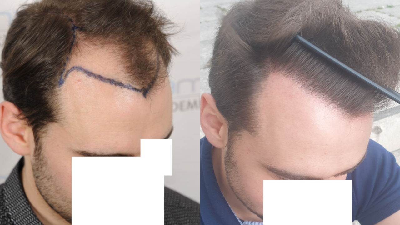 Der Transfer am Flughafen und die Abholung morgens vor der OP war gut organisiert und Herr Weber war immer erreichbar über WhatsApp oder auch telefonisch. Vor der OP haben ich mit Herrn Weber und Herrn Demirsoy zusammen meine Haarlinie besprochen. Ich hatte mein Handy voll mit Fotos von meinen Onkels und Opas, um ein Muster meines Haarausfalls ungefähr vorherzusagen. Ich zeigt auch Bilder von mir mit 18 und meinen ursprünglichen Geheimratsecken. Mein Wunsch war es diesen Status wieder zu erhalten, da ich damals auch nie Probleme mit den Ecken hatte. Eine zu gerade Haarlinie sähe bei mir auch komisch denke ich. Während der OP habe ich mich sehr gut aufgehoben gefühlt. Ich fands auch cool, dass Herr Demirsoy regelmäßig nach meinem Wohlbefinden gefragt hatte und mir dabei auf die Schulter klopfte. Mir wurden 3528 Grafts verpflanzt. Am Morgen nach der OP wurde mir die Haarwäsche erklärt und alle weiteren Schritte für die nächsten Wochen. Ich habe mich strikt an die Vorgaben gehalten, um das bestmögliche Ergebnis zu erzielen. Ca. bis zum 4. Monat ist erstmal nichts bis wenig passiert bzgl. Wachstum. Ab dem 5. Monat ca. konnte ich langsame die Haare stylen, diese waren aber noch etwas undicht. Ab dem 6. Monat wurden diese dichter und dichter, sodass ich langsam wieder eine Frisur tragen konnte.