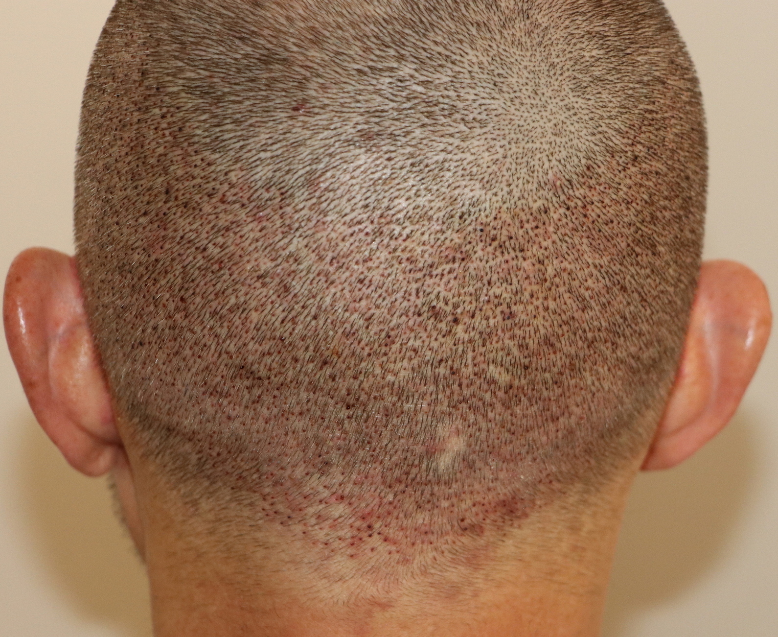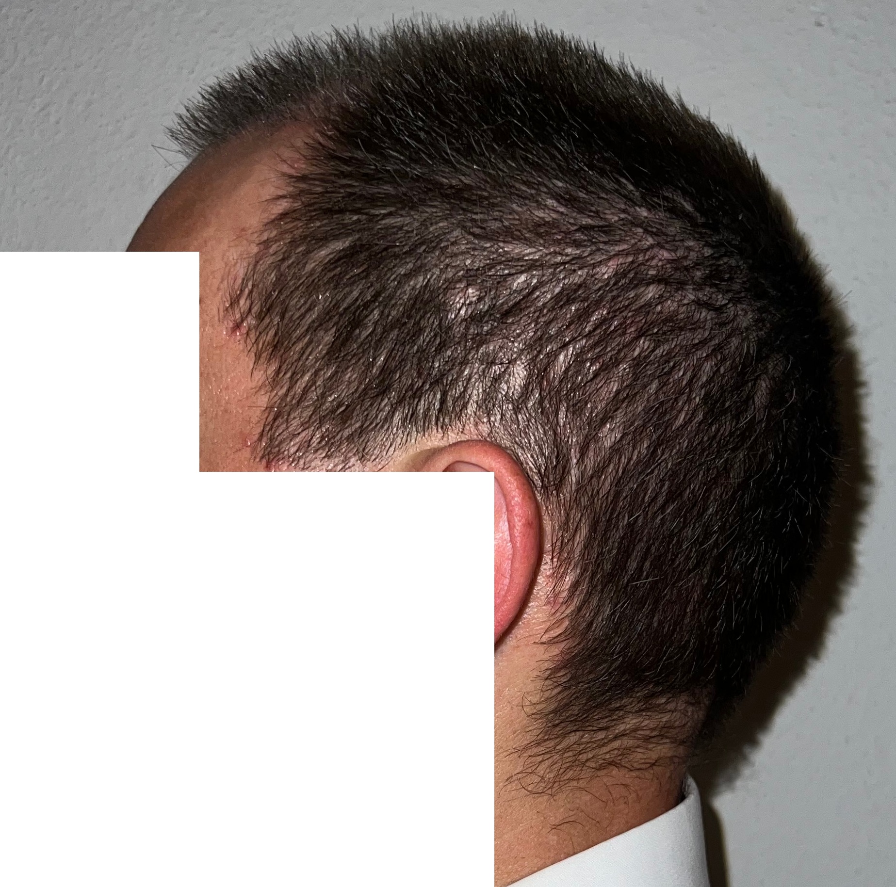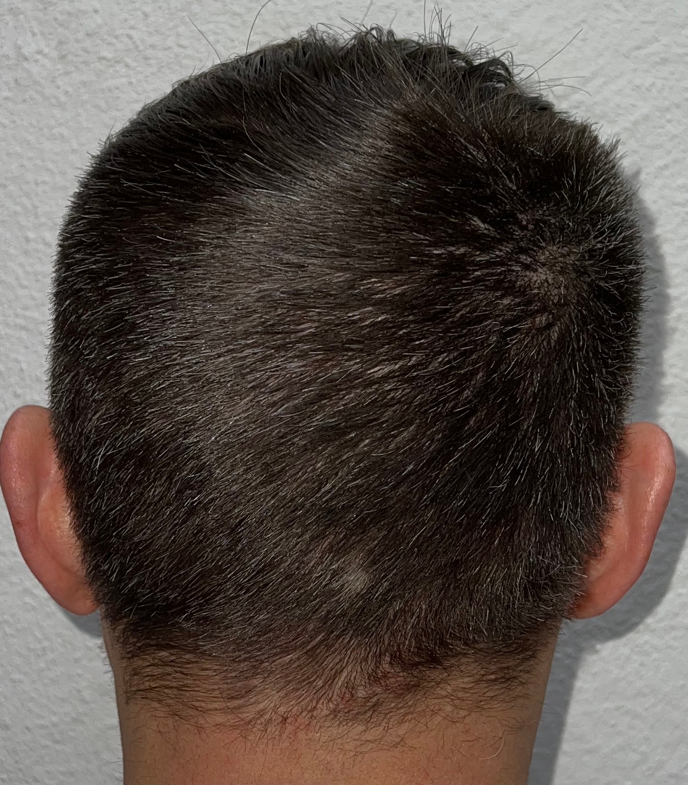 Bin männlich, 42 Jahre alt, Nichtraucher, trinke wenig Alkohol, ernähre mich gesund und nehme keine Medikamente. Habe schon immer GHE und wollte diese endlich los werden. In den letzten Jahren kam leichter bis mittlerer HA in der Hair line zone (Zone 2) und Central core (Zone 3) hinzu. Bisher mit langen, seitlichen Haaren immer kaschiert, so dass es kaum auffällt. Dennoch hat es mich genervt und die Eitelkeit gesiegt.