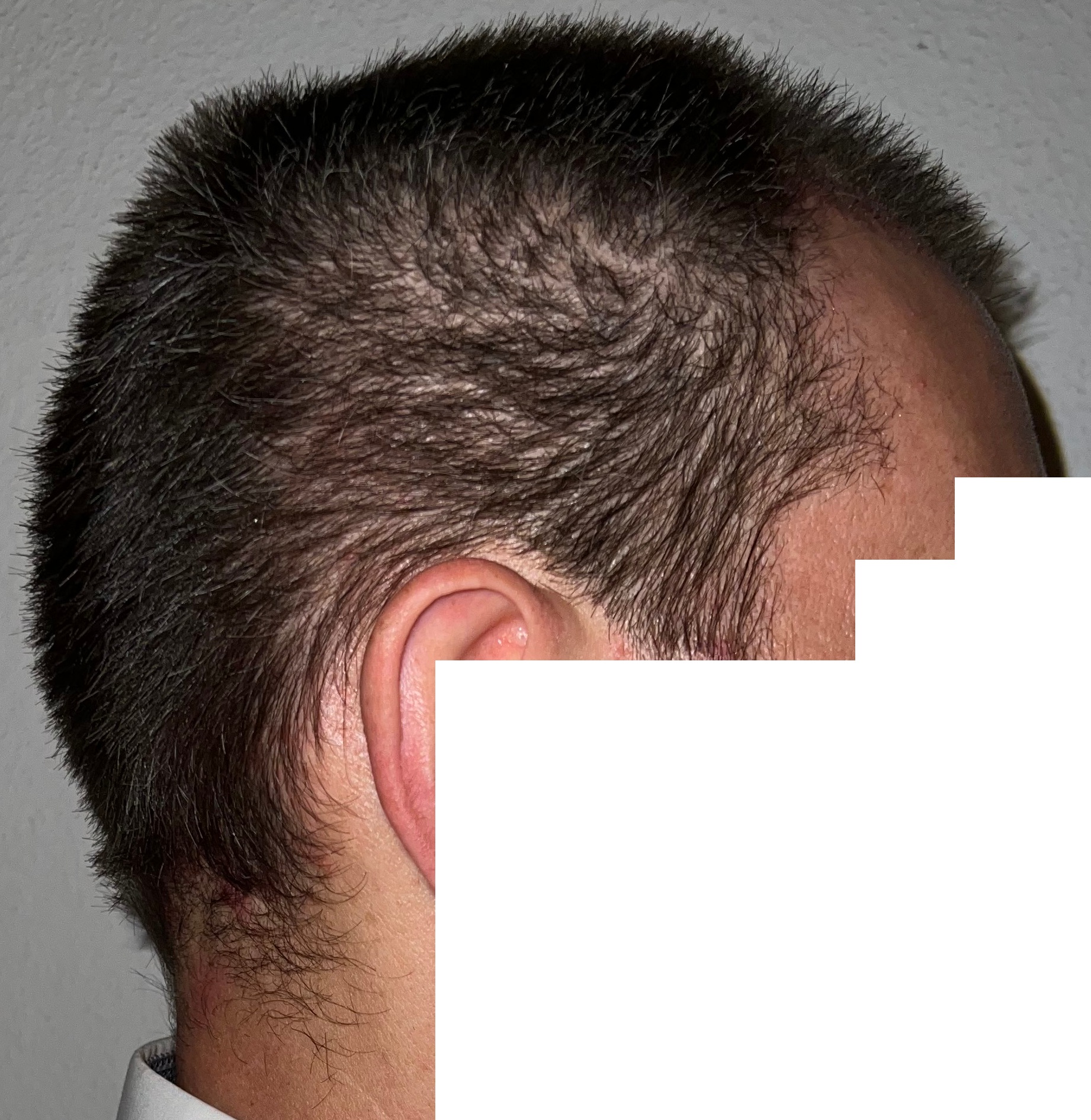Bin männlich, 42 Jahre alt, Nichtraucher, trinke wenig Alkohol, ernähre mich gesund und nehme keine Medikamente. Habe schon immer GHE und wollte diese endlich los werden. In den letzten Jahren kam leichter bis mittlerer HA in der Hair line zone (Zone 2) und Central core (Zone 3) hinzu. Bisher mit langen, seitlichen Haaren immer kaschiert, so dass es kaum auffällt. Dennoch hat es mich genervt und die Eitelkeit gesiegt.