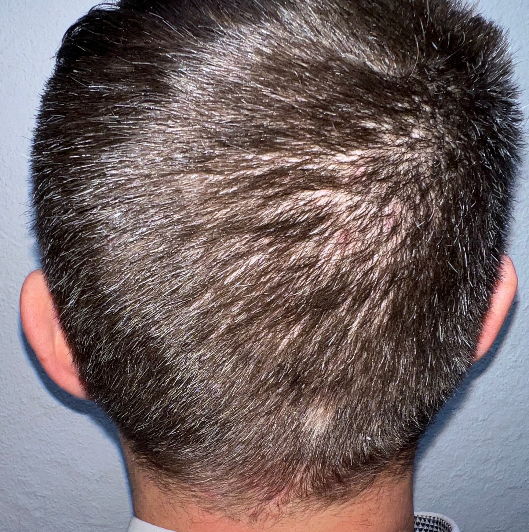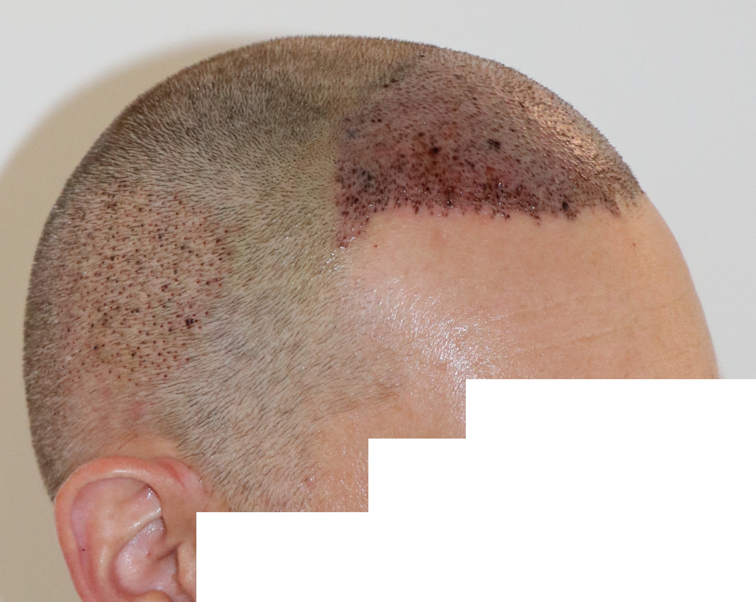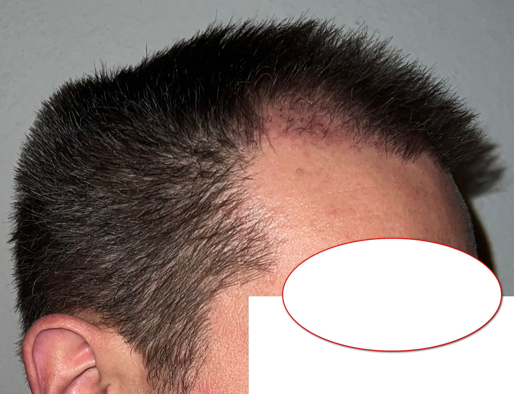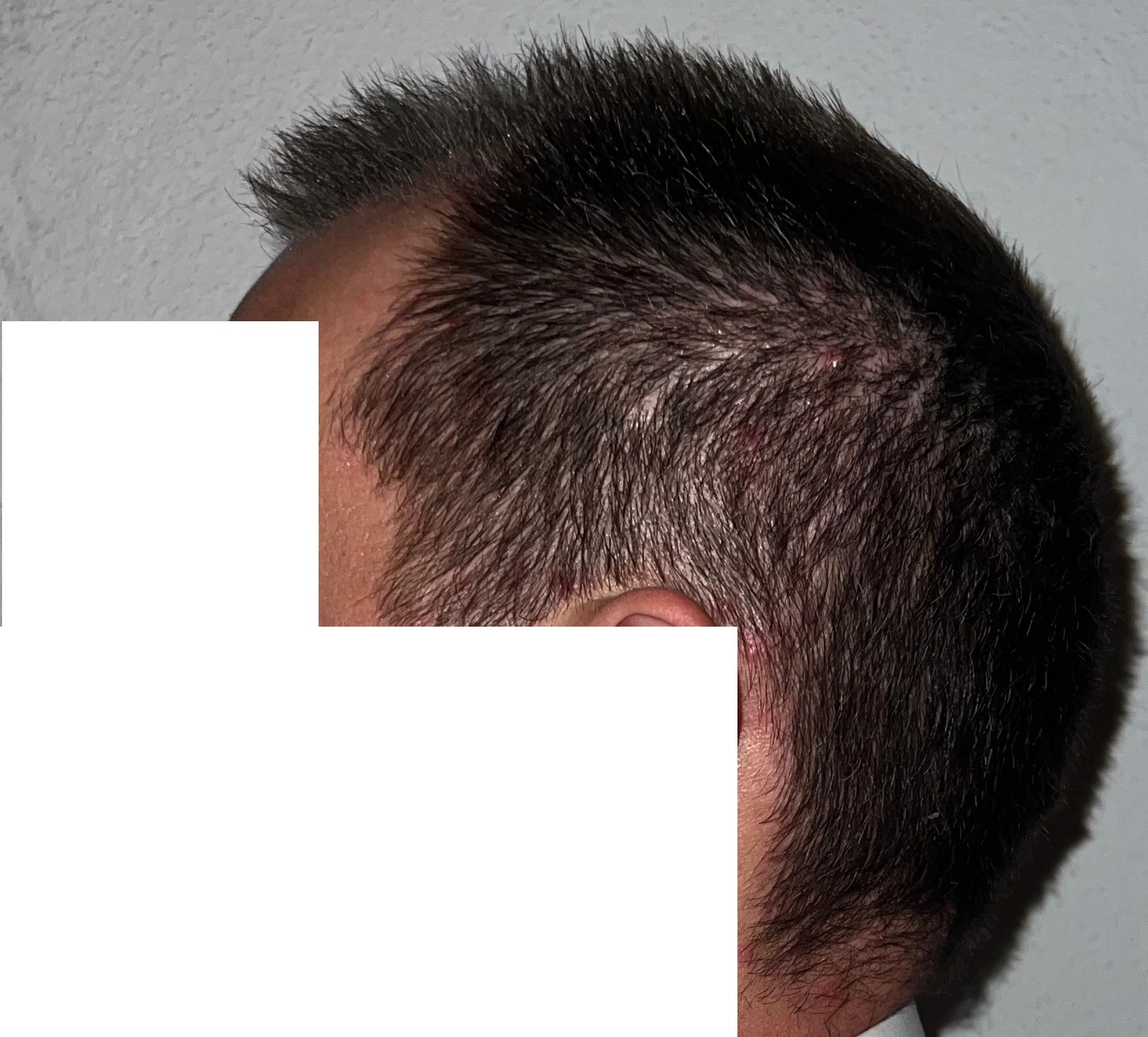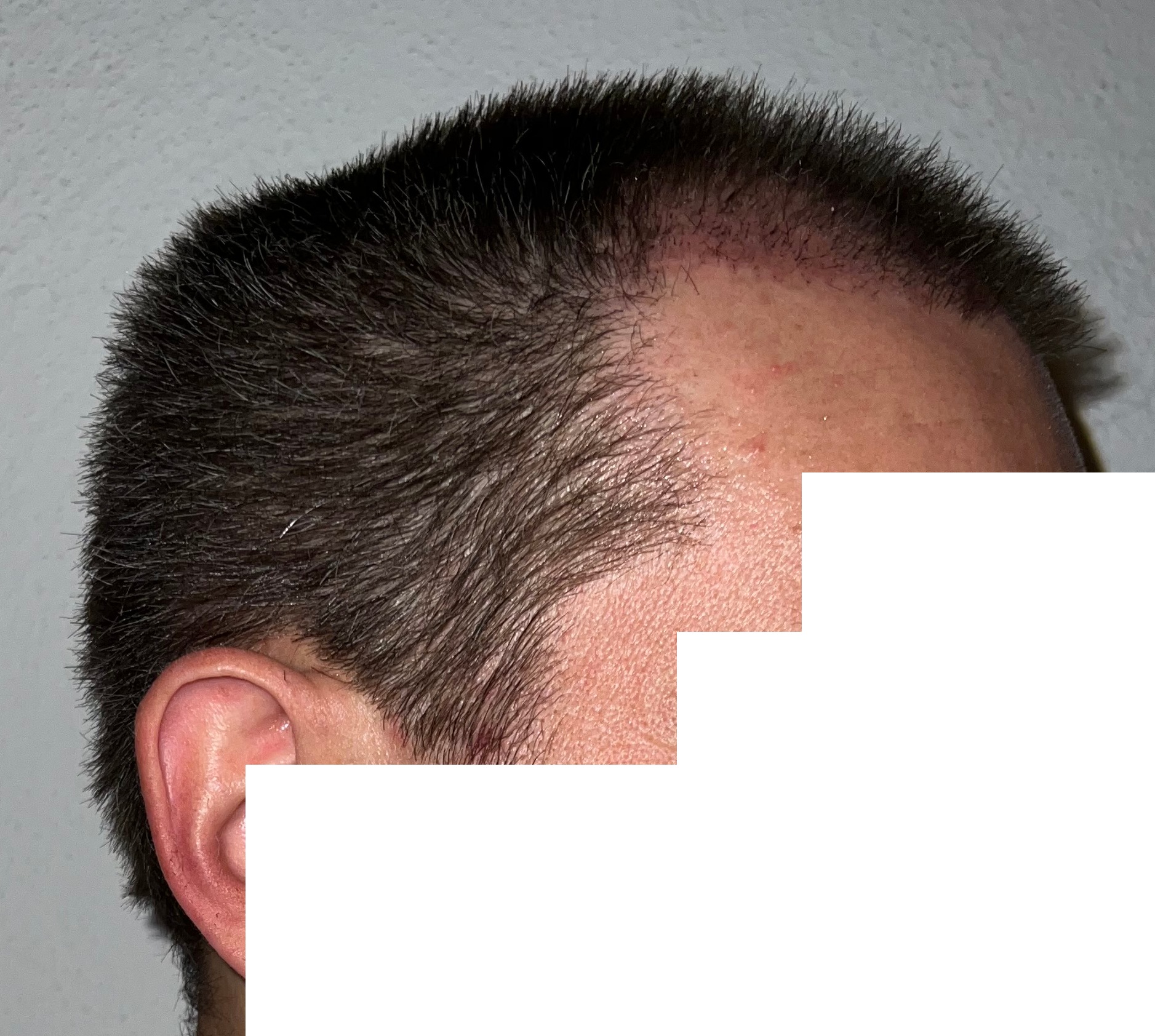 Bin männlich, 42 Jahre alt, Nichtraucher, trinke wenig Alkohol, ernähre mich gesund und nehme keine Medikamente. Habe schon immer GHE und wollte diese endlich los werden. In den letzten Jahren kam leichter bis mittlerer HA in der Hair line zone (Zone 2) und Central core (Zone 3) hinzu. Bisher mit langen, seitlichen Haaren immer kaschiert, so dass es kaum auffällt. Dennoch hat es mich genervt und die Eitelkeit gesiegt.
