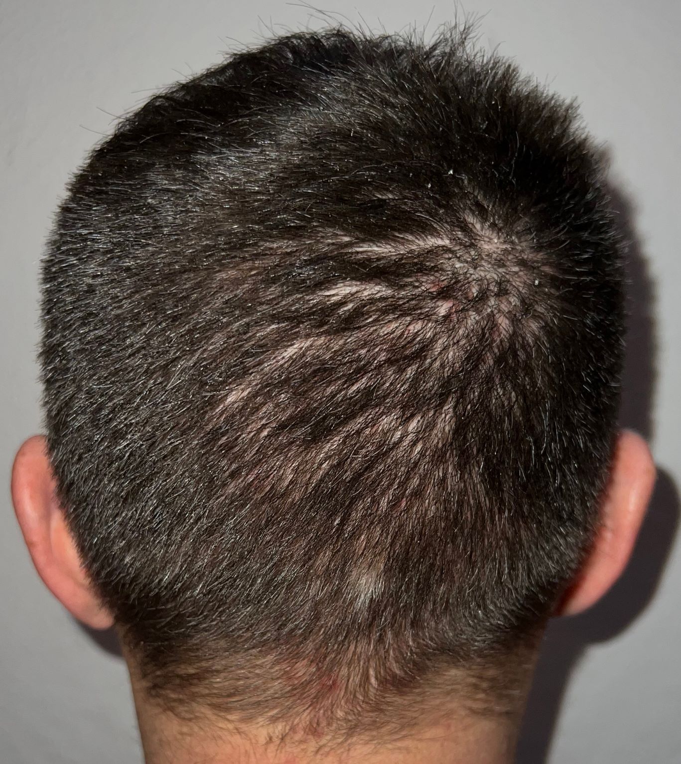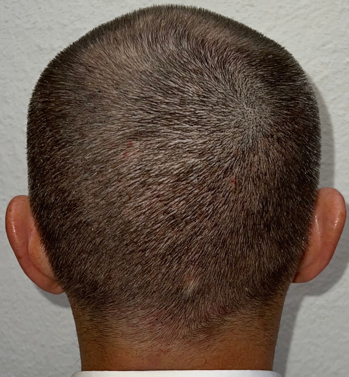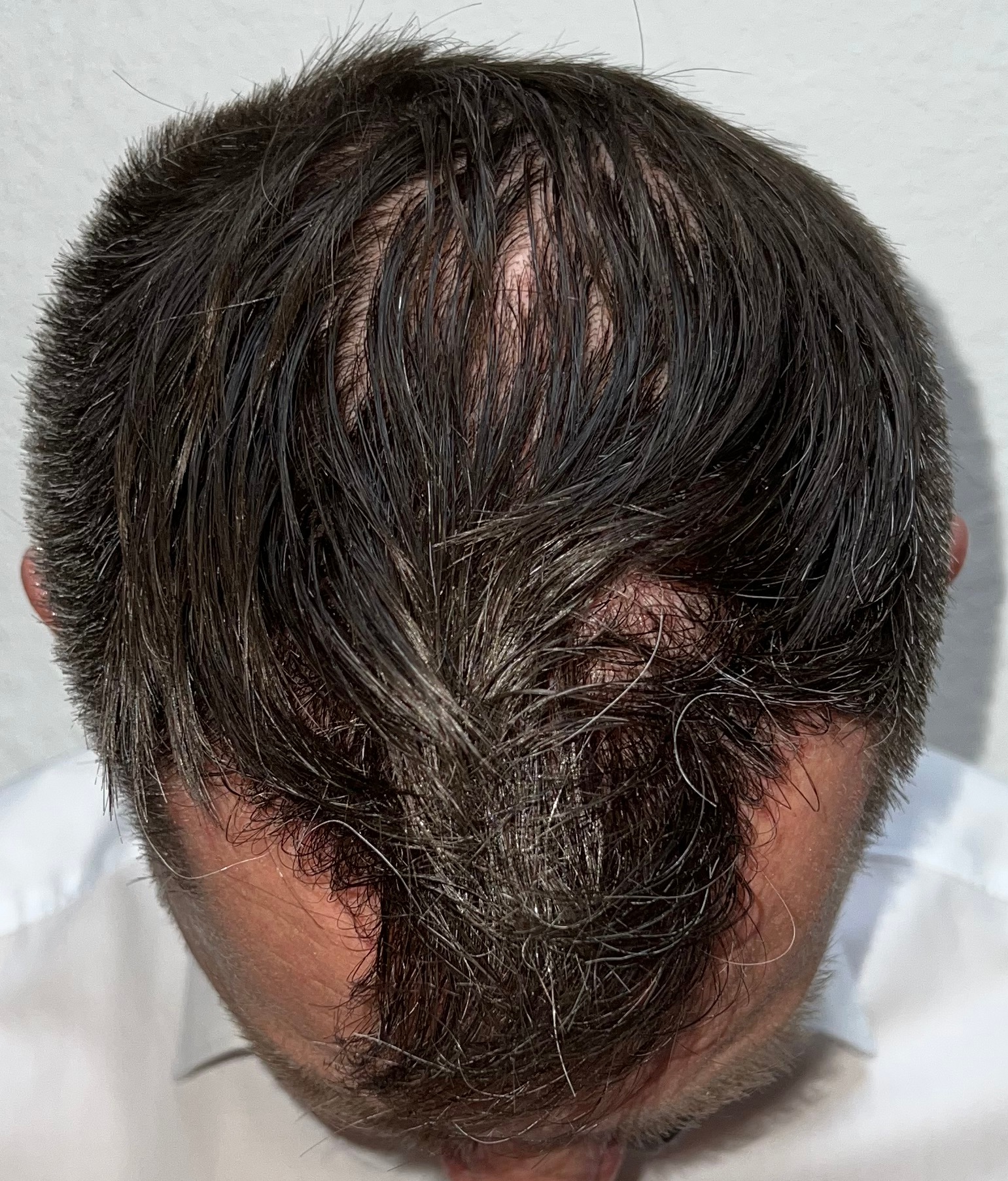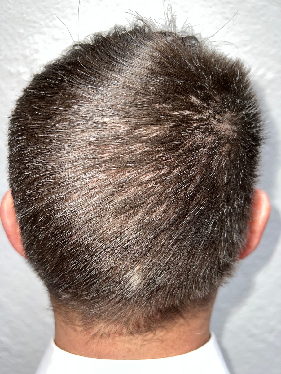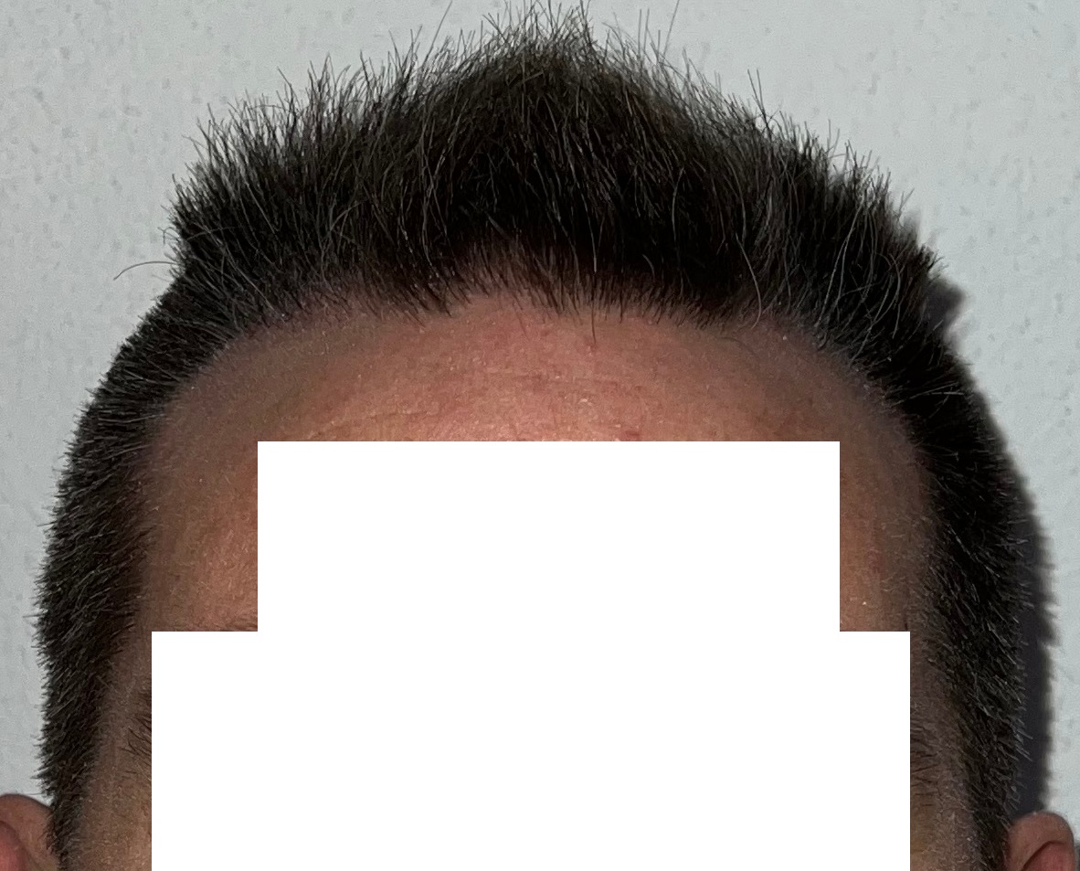 Bin männlich, 42 Jahre alt, Nichtraucher, trinke wenig Alkohol, ernähre mich gesund und nehme keine Medikamente. Habe schon immer GHE und wollte diese endlich los werden. In den letzten Jahren kam leichter bis mittlerer HA in der Hair line zone (Zone 2) und Central core (Zone 3) hinzu. Bisher mit langen, seitlichen Haaren immer kaschiert, so dass es kaum auffällt. Dennoch hat es mich genervt und die Eitelkeit gesiegt.