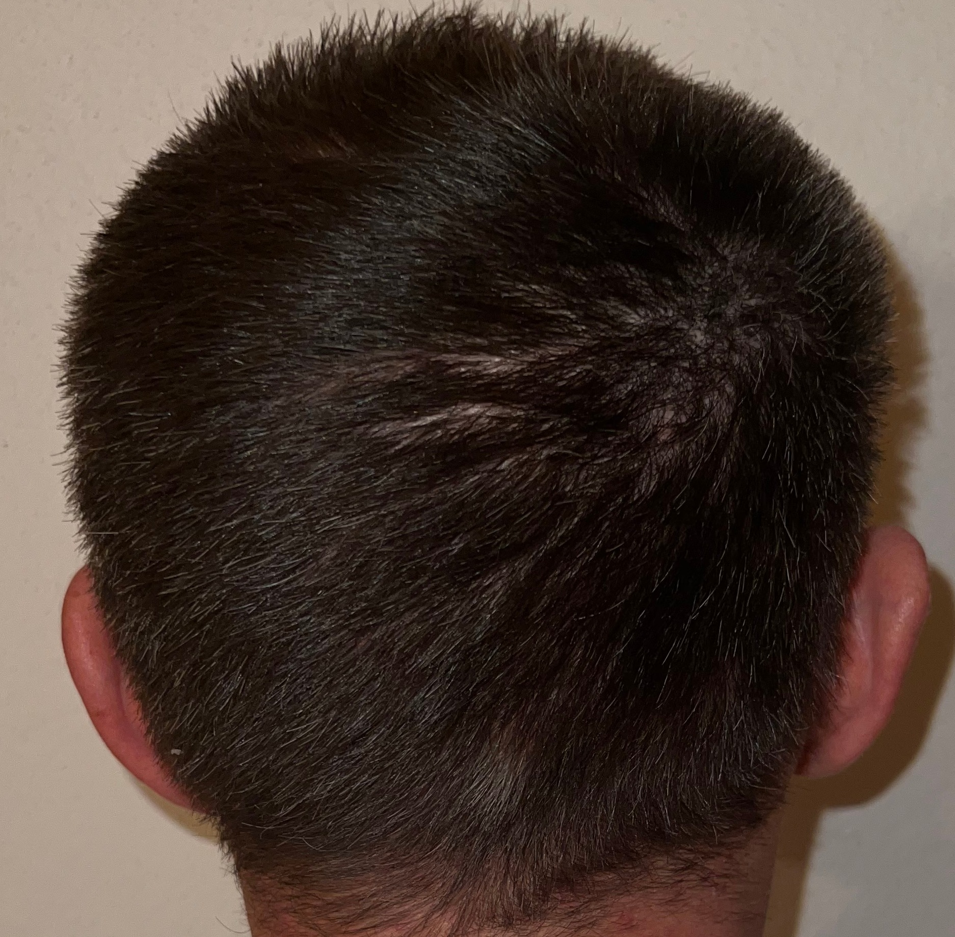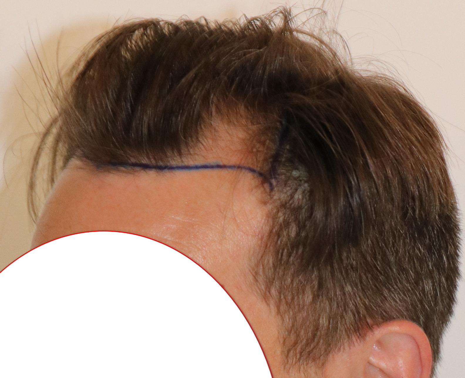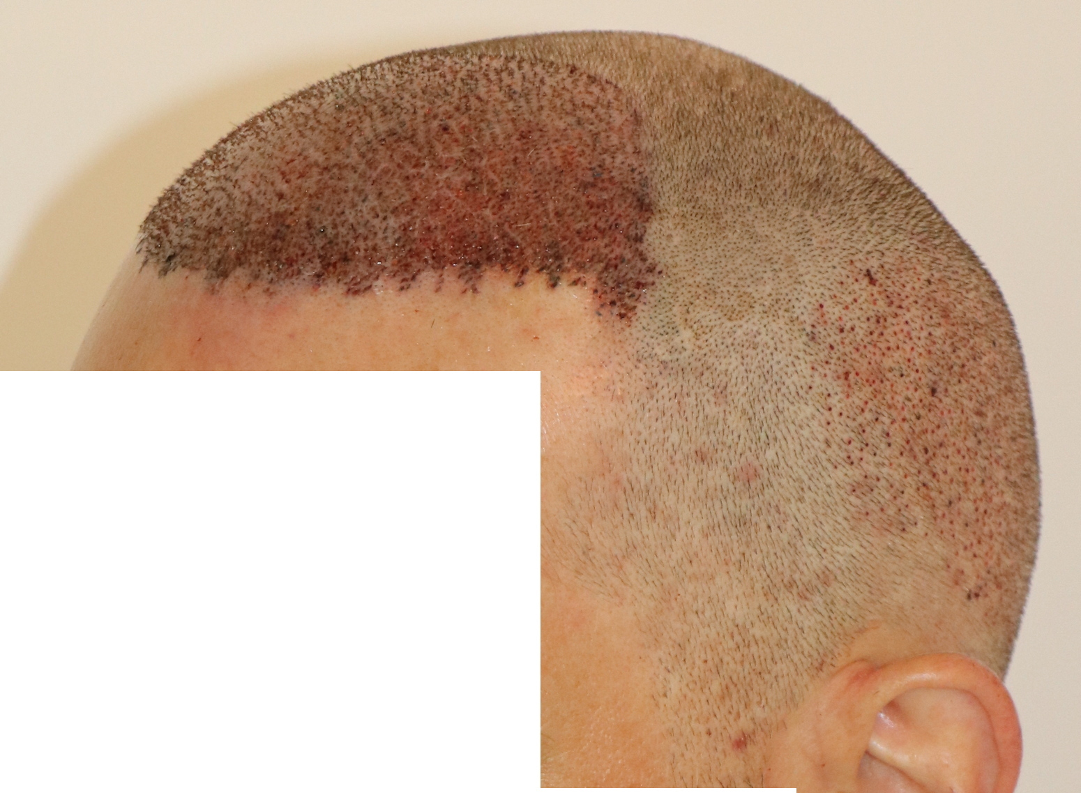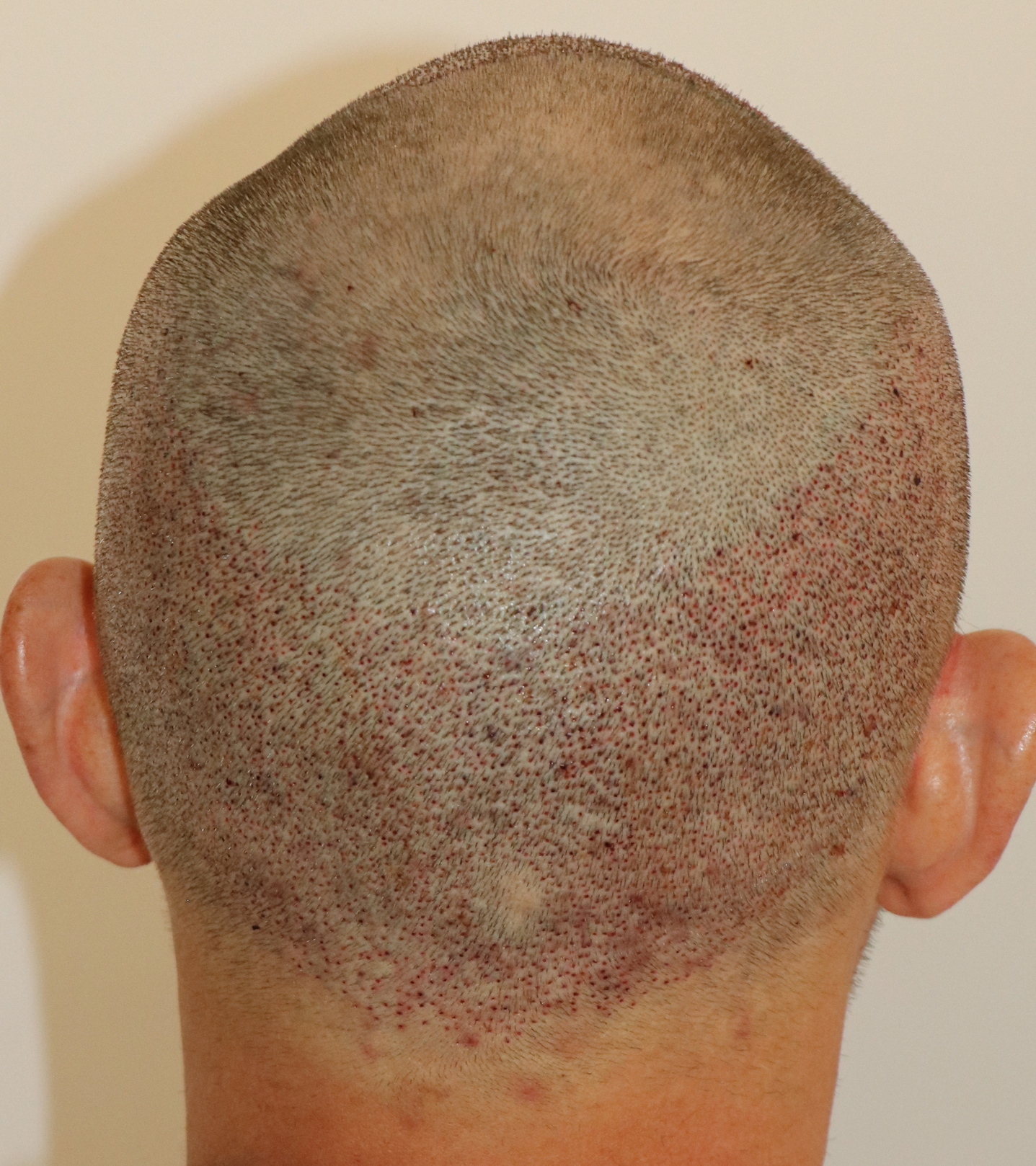 Bin männlich, 42 Jahre alt, Nichtraucher, trinke wenig Alkohol, ernähre mich gesund und nehme keine Medikamente. Habe schon immer GHE und wollte diese endlich los werden. In den letzten Jahren kam leichter bis mittlerer HA in der Hair line zone (Zone 2) und Central core (Zone 3) hinzu. Bisher mit langen, seitlichen Haaren immer kaschiert, so dass es kaum auffällt. Dennoch hat es mich genervt und die Eitelkeit gesiegt.