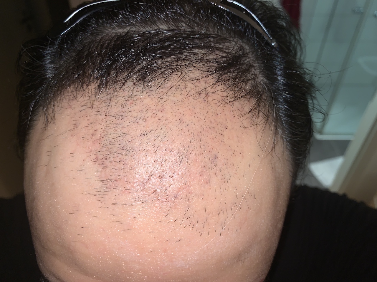 bin heute genau in der 11. postoperativen Woche. Habe heute die vorderen 2/3 der Transplantationszone auf 1 mm rasiert, sah irgendwie komisch aus, konnte auch gar nicht sehen wo nun transplantiert worden ist, also ich konnte keine Haarlinie nachvollziehen. Die ersten beide Fotos sind unmittelbar vor der Rasur, die anderen 4 entsprechend direkt danach. Man sieht auch gut, dass die sogenannte Brücke sehr gut nachgewachsen ist, wurde auch mit rasiert und behandelt, siehe auch postop Foto Tag 0, aber der Rest ist erschreckend häßlich wie erwartet und bekannt. Trotzdem bin ich jetzt fast 3 Monate postoperativ und finde es sehr schlecht, hoffe nicht zu den Patienten zu gehören die kein ansehnliches Ergebnis bekommen. An einigen Stellen ist es immer noch glatt und kahl wie ein Babypo.