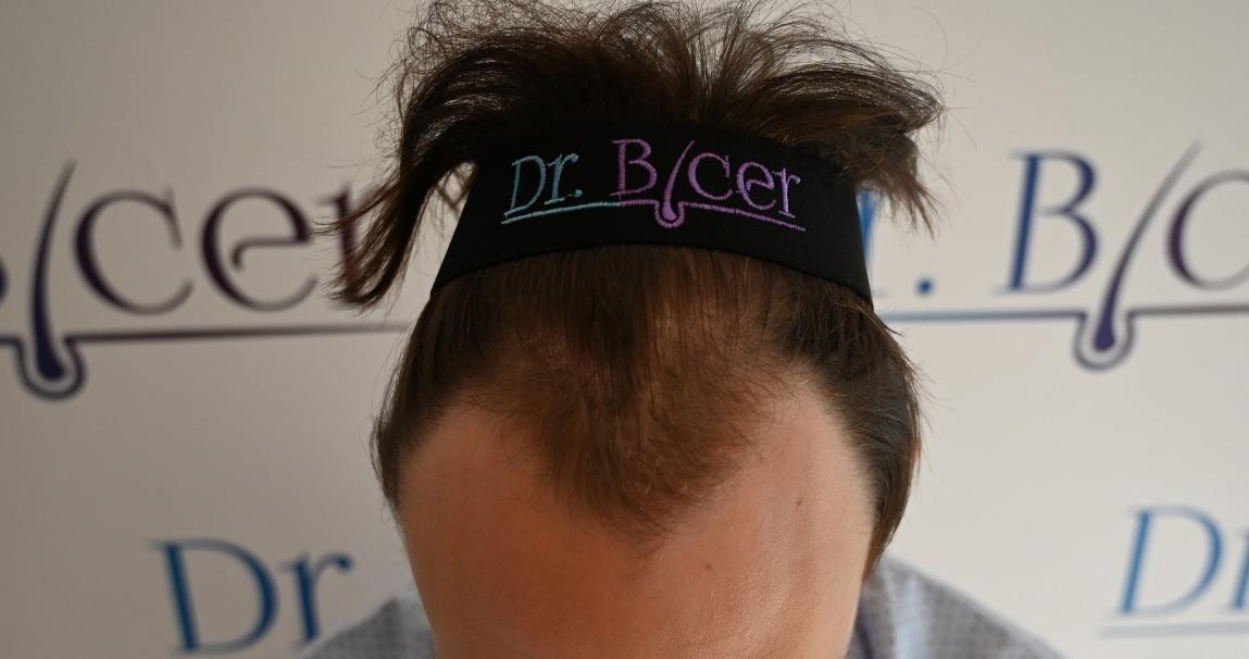 Am Tag der Operation, ein Samstag wurde mir gegen 08:15 Uhr ein Frühstück gebracht. Wegen der Aufregung hielt sich mein Hunger in Grenzen, aber Aydin hatte darauf hingewiesen, dass es besonders wichtig sei, ausreichend am Morgen zu sich zu nehmen. Gegen 08:30 wurde ich dann von Aydin abgeholt. Die Suite befindet sich in dem gleichen Gebäude wie die Klinik. In der Klinik angekommen wurde ich dann von den Mitarbeitern freundlich begrüßt. Aydin hatte mir eine Mappe mit Formalia gegeben; Patientenaufklärungsbögen und Einwilligungserklärungen, die ich durchlesen, unterschreiben und teilweise abschreiben musste. Dies schreibt das türkische Gesundheitsministerium auch so vor. Die Inhalte dieser Aufklärungsbögen, die verständlicherweise auch einen worst-case schildern sind, wenn man sie liest, ein wenig unangenehm auszufüllen. In dem Empfangsbereich wartete ein anderer Patient, der am Vortag eine Barthaartransplantation durchführen lassen hatte. Er war zur Kontrolle erschienen, die durchgeführt wurde, während ich mich um die Formalia kümmerte und mit Aydin sprach. Nachdem dies erledigt war, wurde ich in den Vorbereitungsraum gebeten, in dem mit Blut für Nachweise auf übertragbare Virusinfektionen sowie für das Plättchen-reiche Plasma zum Lagern der Grafts entnommen wurde. Aydin gab mir einen Stressball, an dem ich meine Energie ablassen konnte. Meine Haarsituation hatte mich im Vorfeld stark belastet und ich war deswegen besonders aufgeregt. Die netten Gespräche mit Aydin und das Lächeln der Mitarbeiterinnen machten die Prozedur angenehmer. Es wurden Bilder von meinem Kopf vor der Rasur aufgenommen. Anschließend wurde ich ins Arbeitszimmer von Frau Dr. Bicer gebeten. Dort hat sie, mit den Haaren, erste Ansätze für die Haarlinie eingezeichnet. Sie ging konservativ vor, weil ich mit 25 Jahren ein junger Patient sei. Sie erläuterte mir, dass sie die Haarlinie nicht sonderlich tief setzen werde, um Grafts für spätere Zeiten sparen zu können. Das stimmte mit meiner Vorstellung und anderen Beratungen auch überein. Die beantwortete mir alle Fragen, die ich hatte und ging auch, nach medizinischem Verständnis auf Wünsche meinerseits bezüglich der Verteilung der Implantate ein. Nach der Besprechung wurden die Haare abrasiert, ein Vorgang, nach dem ich mich sehr eigenartig gefühlt hatte. Dr. Bicer korrigierte dann die Haarlinie, um sie dem Gesicht- und der Kopfform anzupassen. Sie versuchte mehrere Ansätze, die sie mit einem Feuchtetuch immer wieder korrigierte, bis sie mit dem Ergebnis zufrieden war. Für die Bezahlung kam danach die Mitarbeiterin, die mit der Buchhaltung beauftragt war und Aydin, der die ganze Zeit über anwesend war, hatte ausgerechnet und erläutert, wie viel ich nun bezahlen sollte. Die Mitarbeiterin hat die Summe geprüft und die Bezahlung war abgeschlossen. Anschließend habe ich mich in die OP-Kleidung umgezogen und meine Wertsachen in einem Schrank im Vorbereitungsraum verschlossen. Den Schlüssel behielt ich über die Zeit der