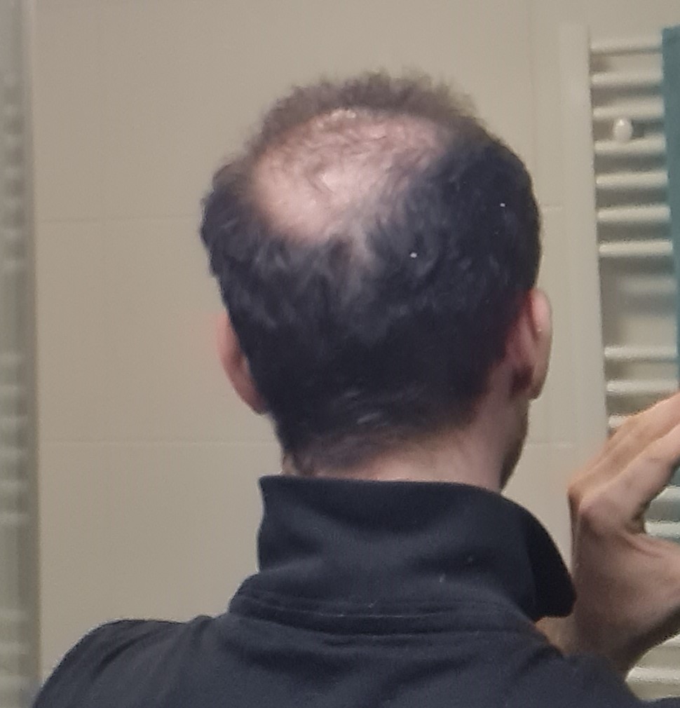* Haarstatus in der Familie (Eltern/Großeltern): Vater 72 Jahre (HN 3 Vertex), Großvater (mütterlicherseits) war bereits mit 18 Jahren kahl (HN 7).