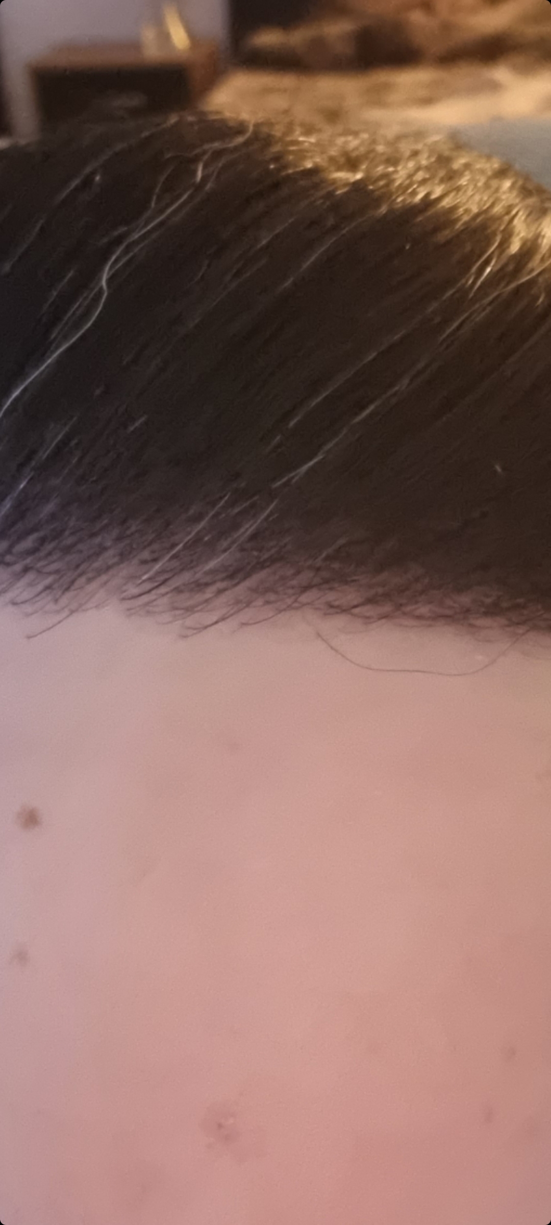 Es Juckt einen natürlich immer die Haarlinie nochmal bis zu senken aber ich habe jetzt nochmal die ghe verkleinert und die Linie nen Stück nach unten gezogen und verdichtet. Das bleibt jetzt da , werde ja auch nicht jünger und Nw0 muss es nicht mehr sein. Der Touch up wird zu Verdichtung und für den Nw 6 Halbmond benötigt.