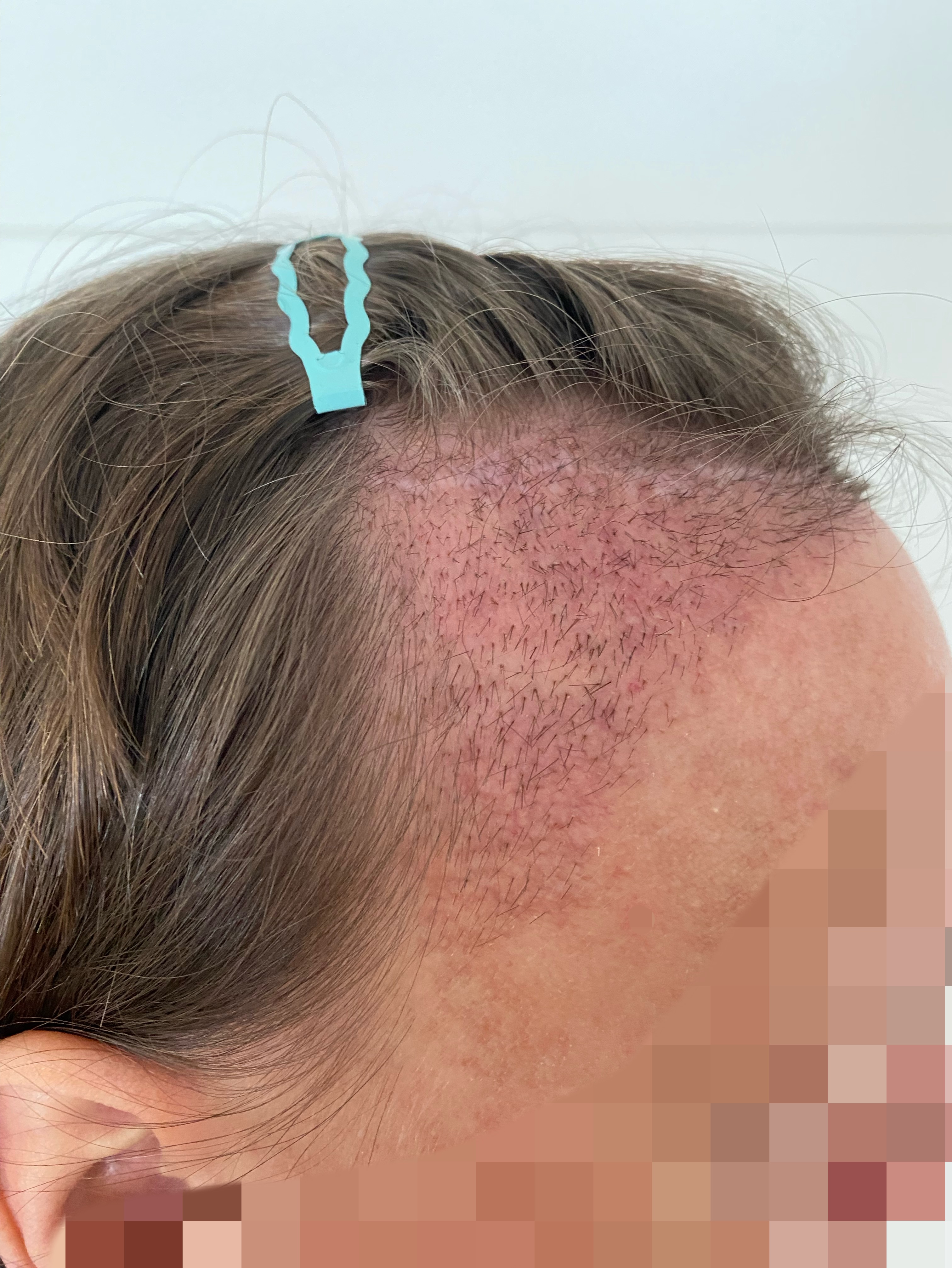 Die Rötung der Kopfhaut ist nun fast nicht mehr zu sehen.