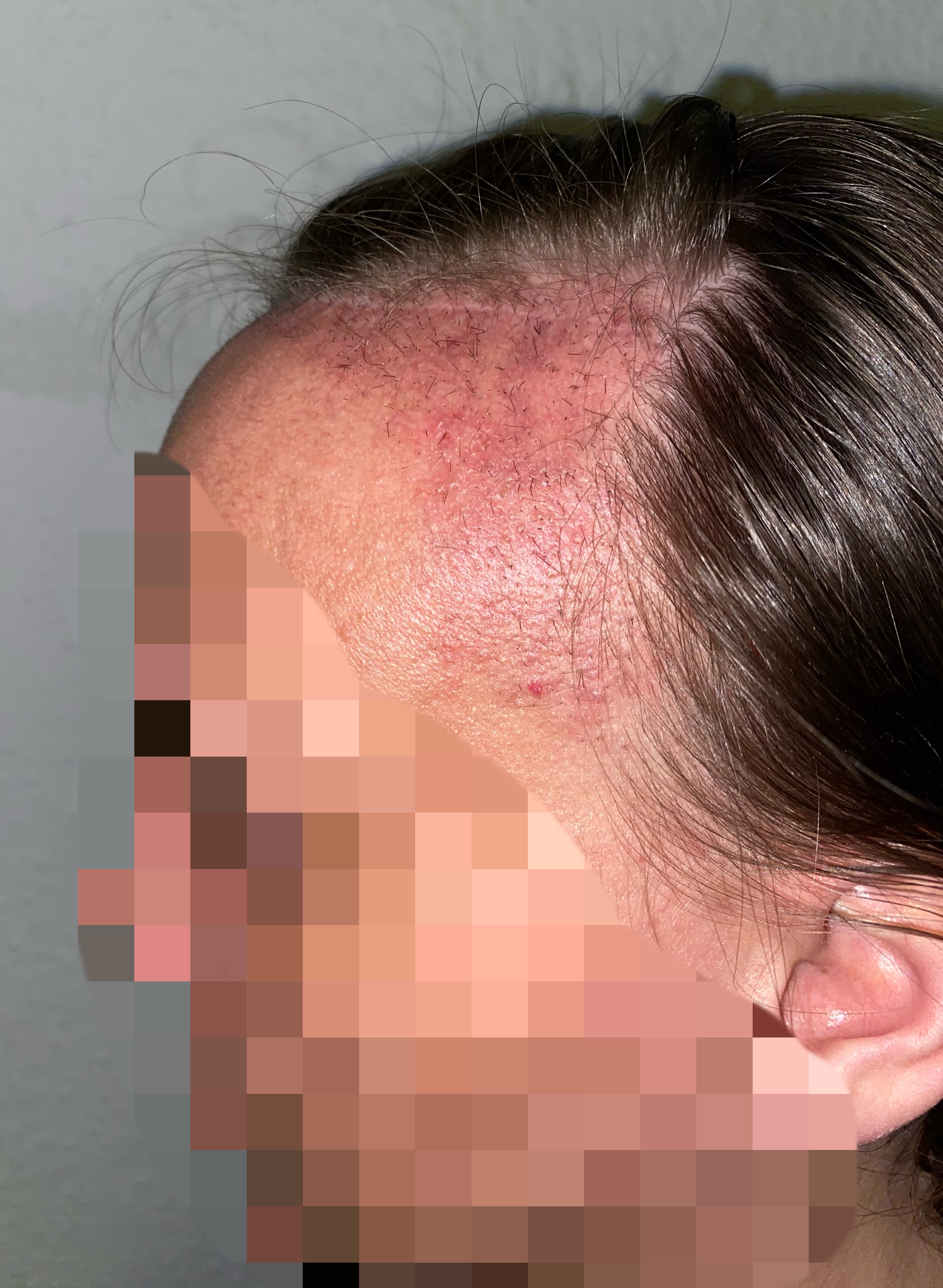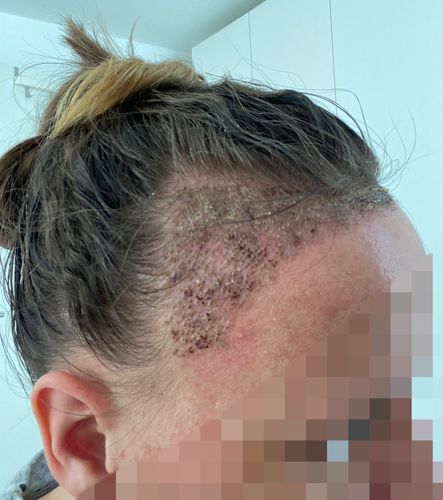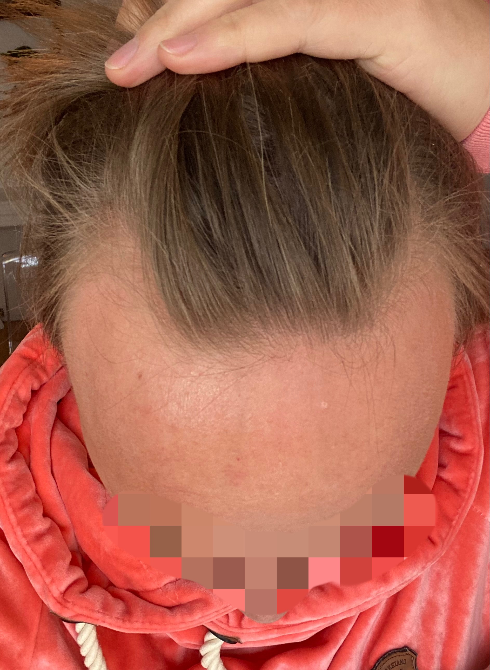 Die Rötung der Kopfhaut ist nun fast nicht mehr zu sehen.