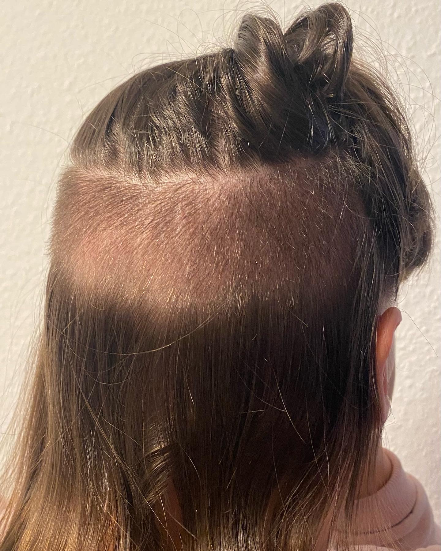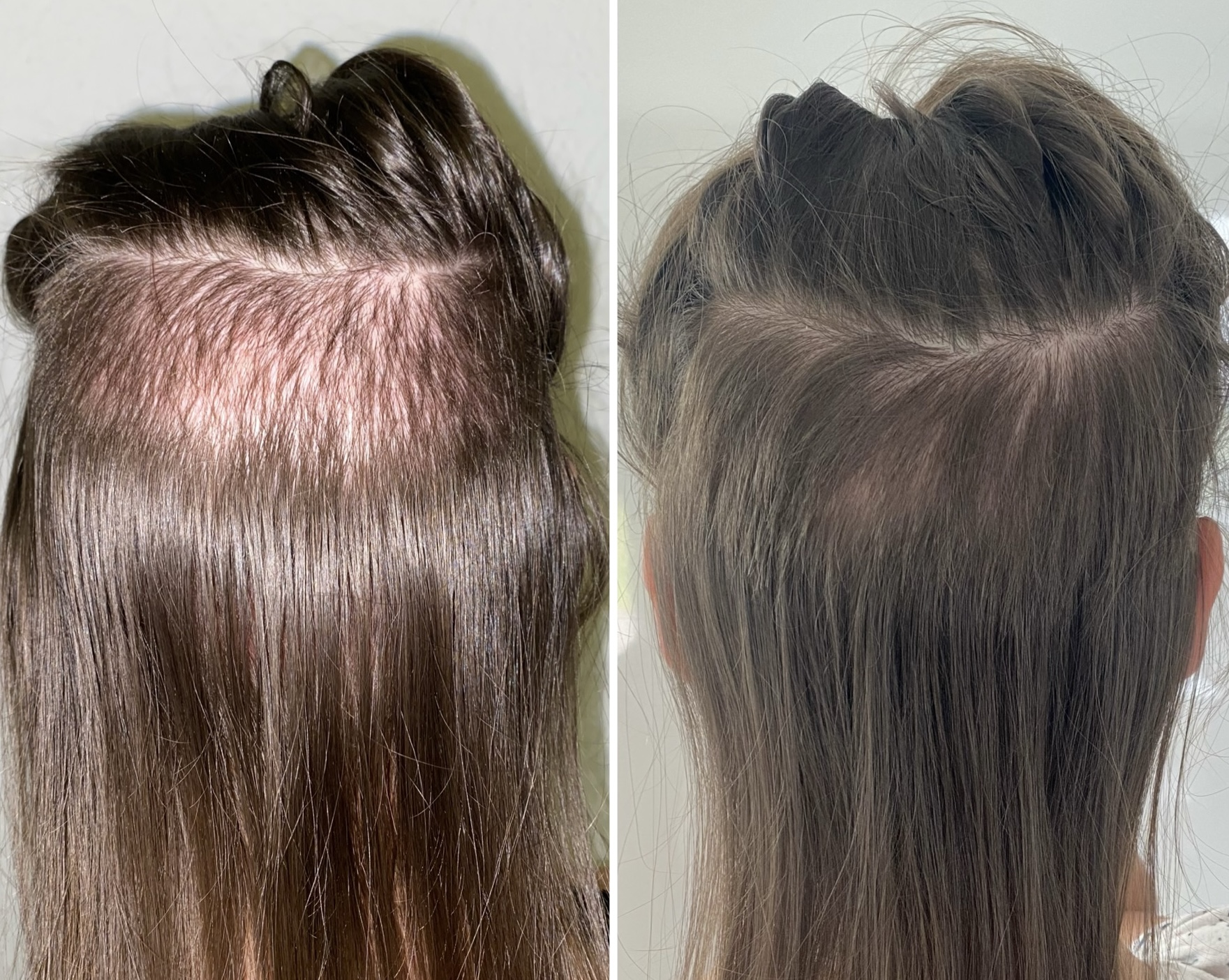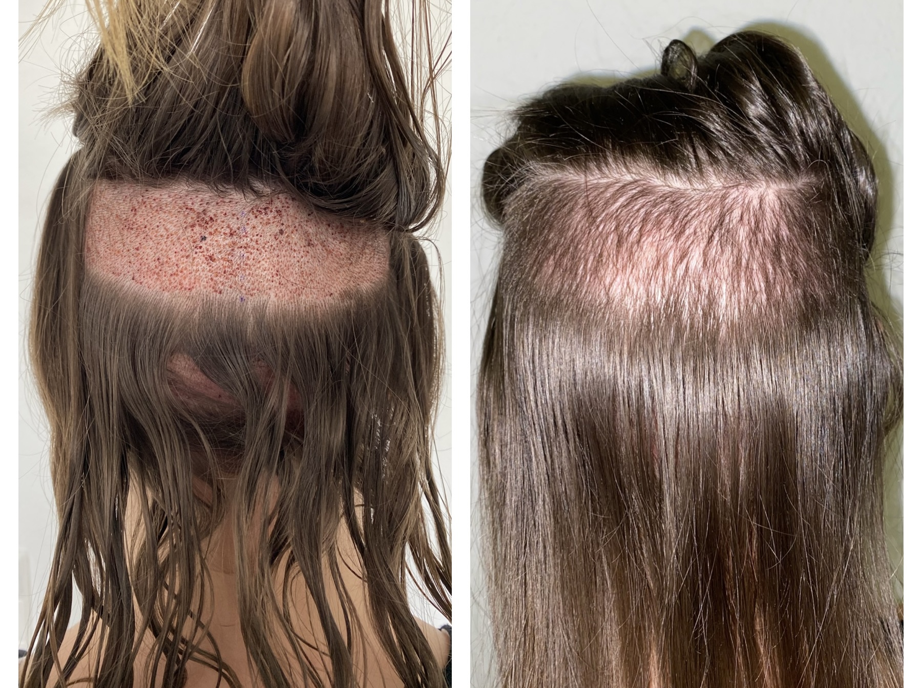 Die Haare im Spenderbereich )Vergleich: 30 Tage (1 Monat) / 3 Monate) sind die Haare schön und dicht nachgewachsen. Die Kopfhaut scheint nicht mehr durch und auch mit offenem Haar fällt nichts mehr auf.