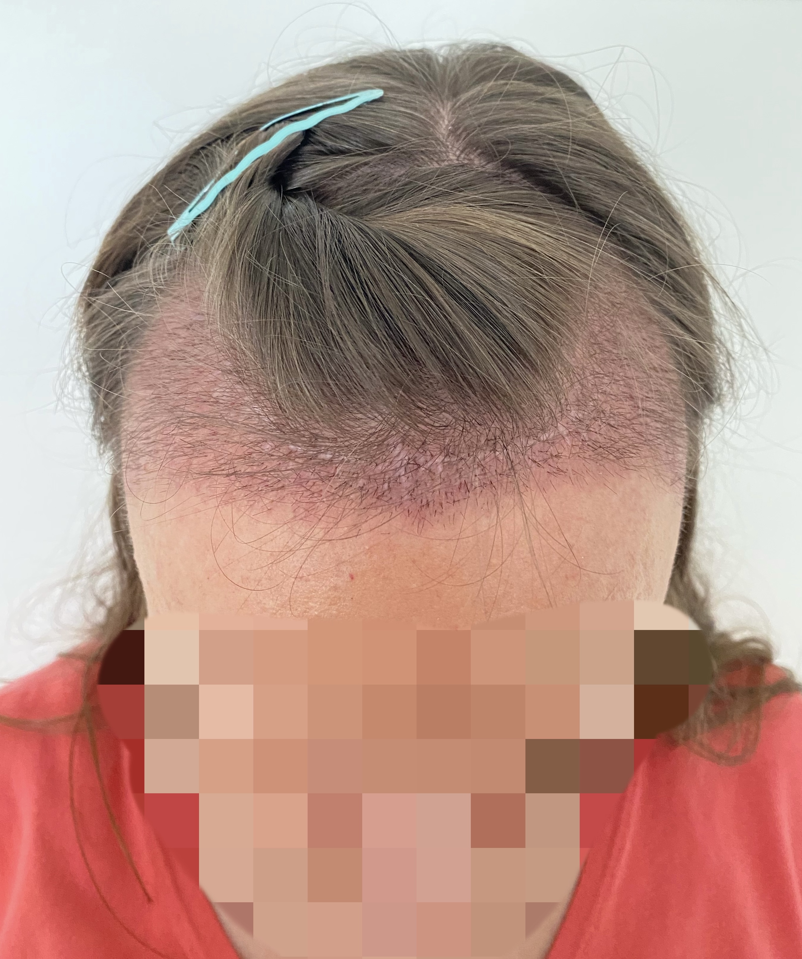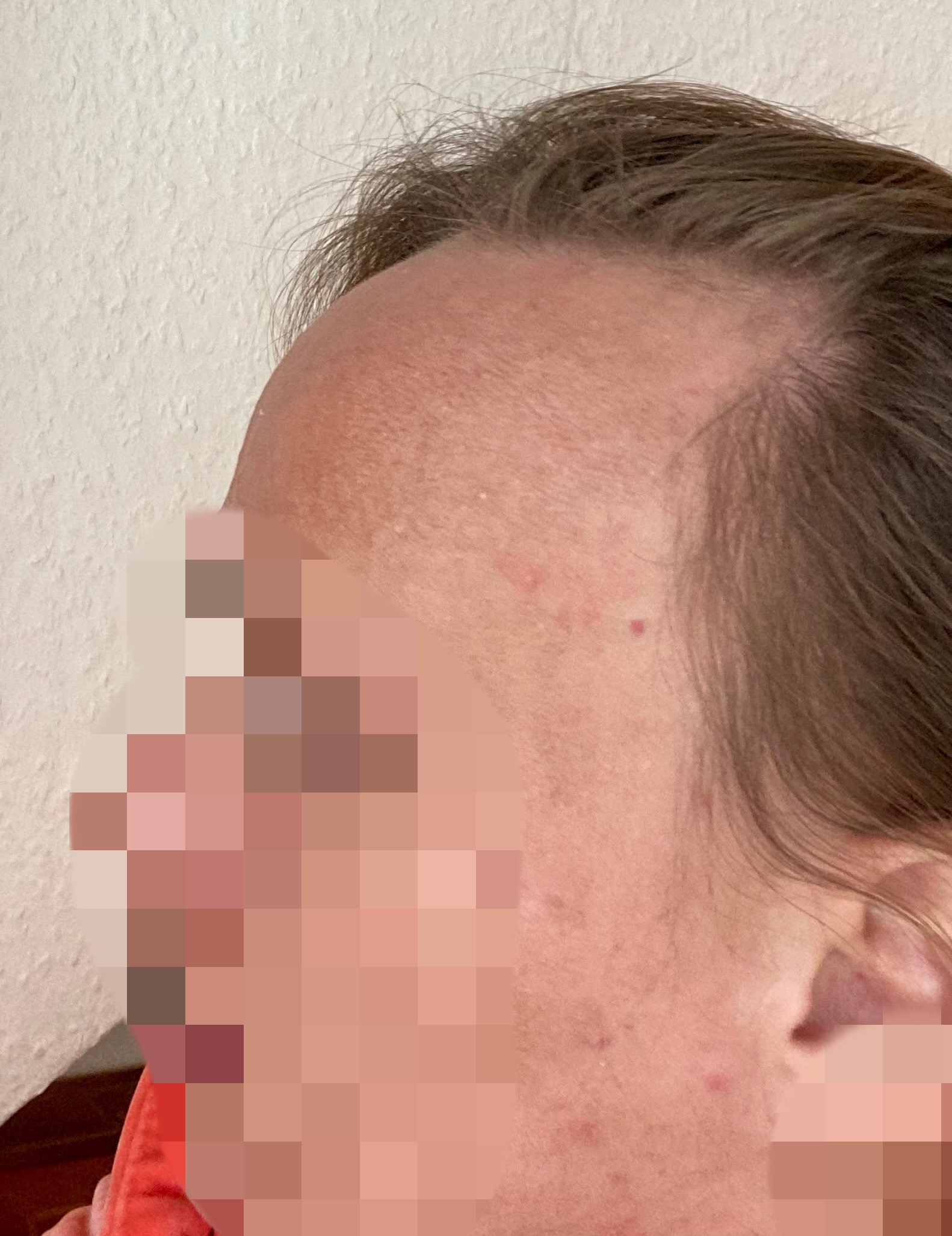 Die Rötung der Kopfhaut ist nun fast nicht mehr zu sehen.