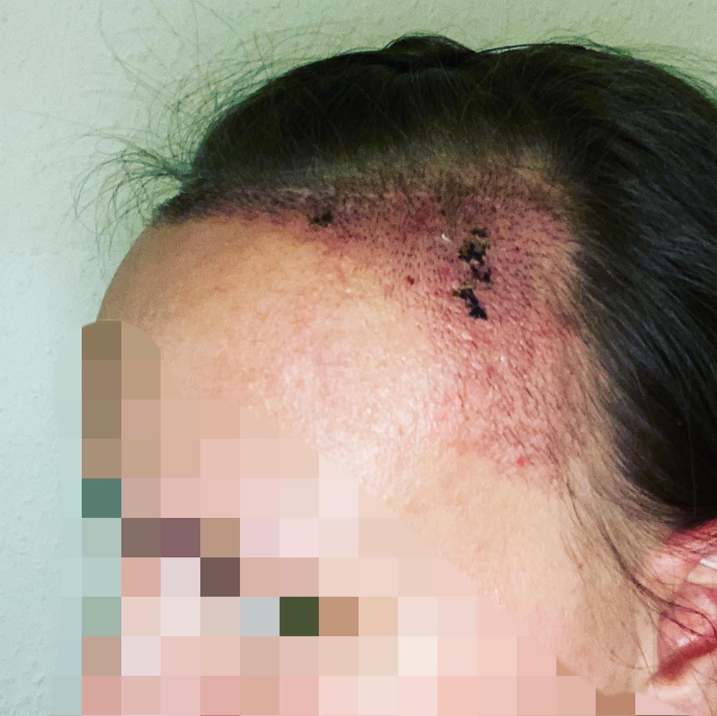 Hier seht ihr die Fotos meines Hinterkopfes (Fotos auch ein Tag nach dem Eingriff). Es wird vermutlich sehr lange dauern, bis die Haare wieder ihre ursprüngliche Länge erreichen - doch zum Glück lassen sich die noch kahlen Stellen gut verdecken.