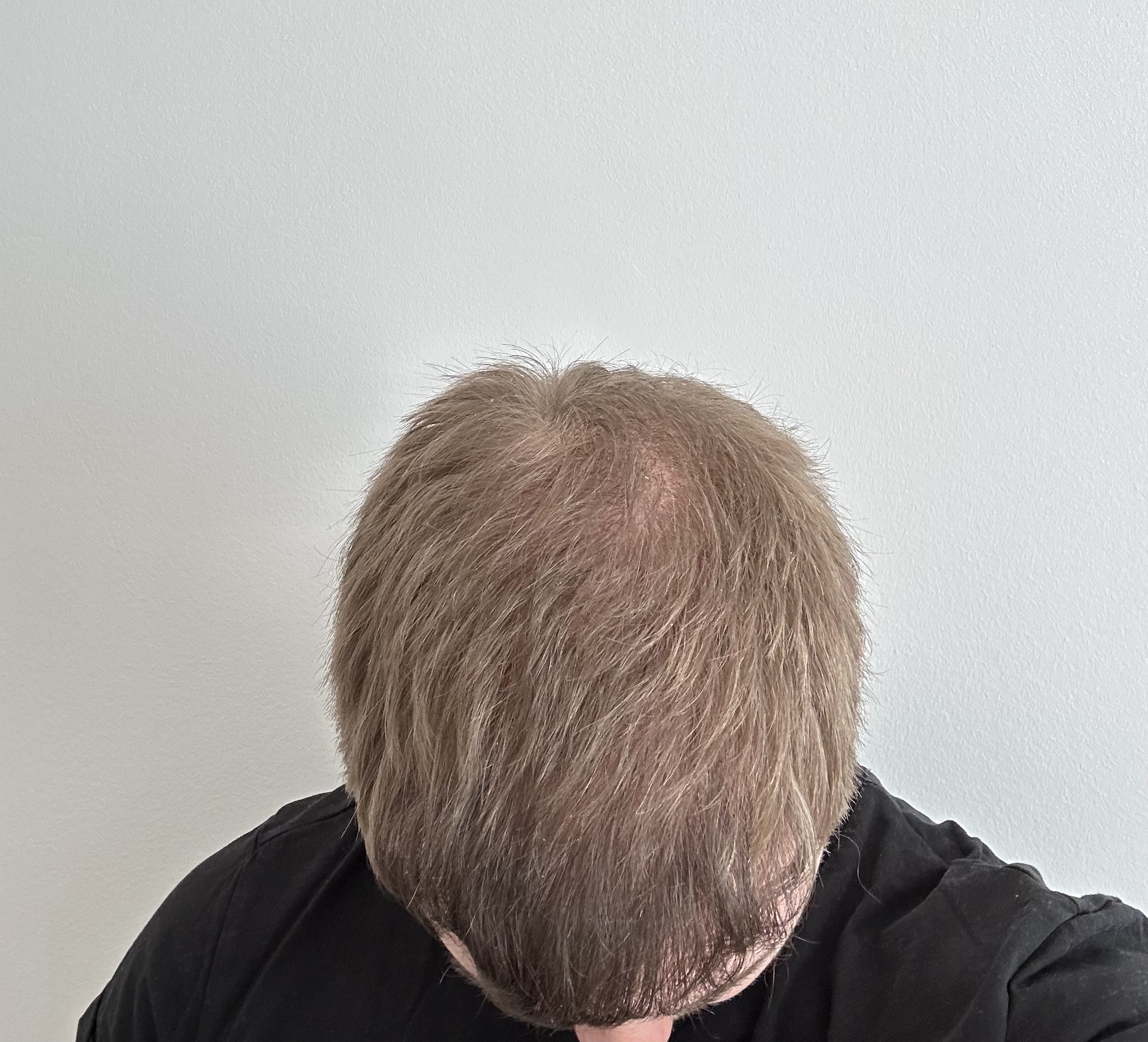 Im Anhang Bilder vom Empfänger- und Spenderbereich etwa eine Woche nach dem Eingriff. Es wurden ca. 2200 Grafts im vorderen Bereich zur Verdichtung und Befüllung der Geheimratsecken verwendet. Etwa 800 Grafts wurden ab dem Mittelkopf zur Verdichtung eingesetzt. (Bilder von vor der HT folgen noch.)