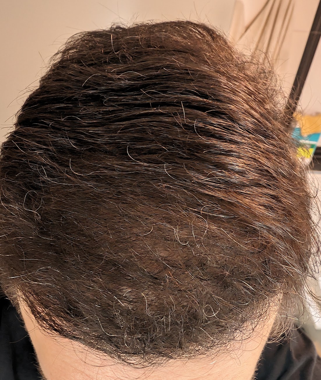 Im Anhang noch das Gesamtbild. Ich bin nach wie vor verschont geblieben von Verlust allzu vieler Haare.