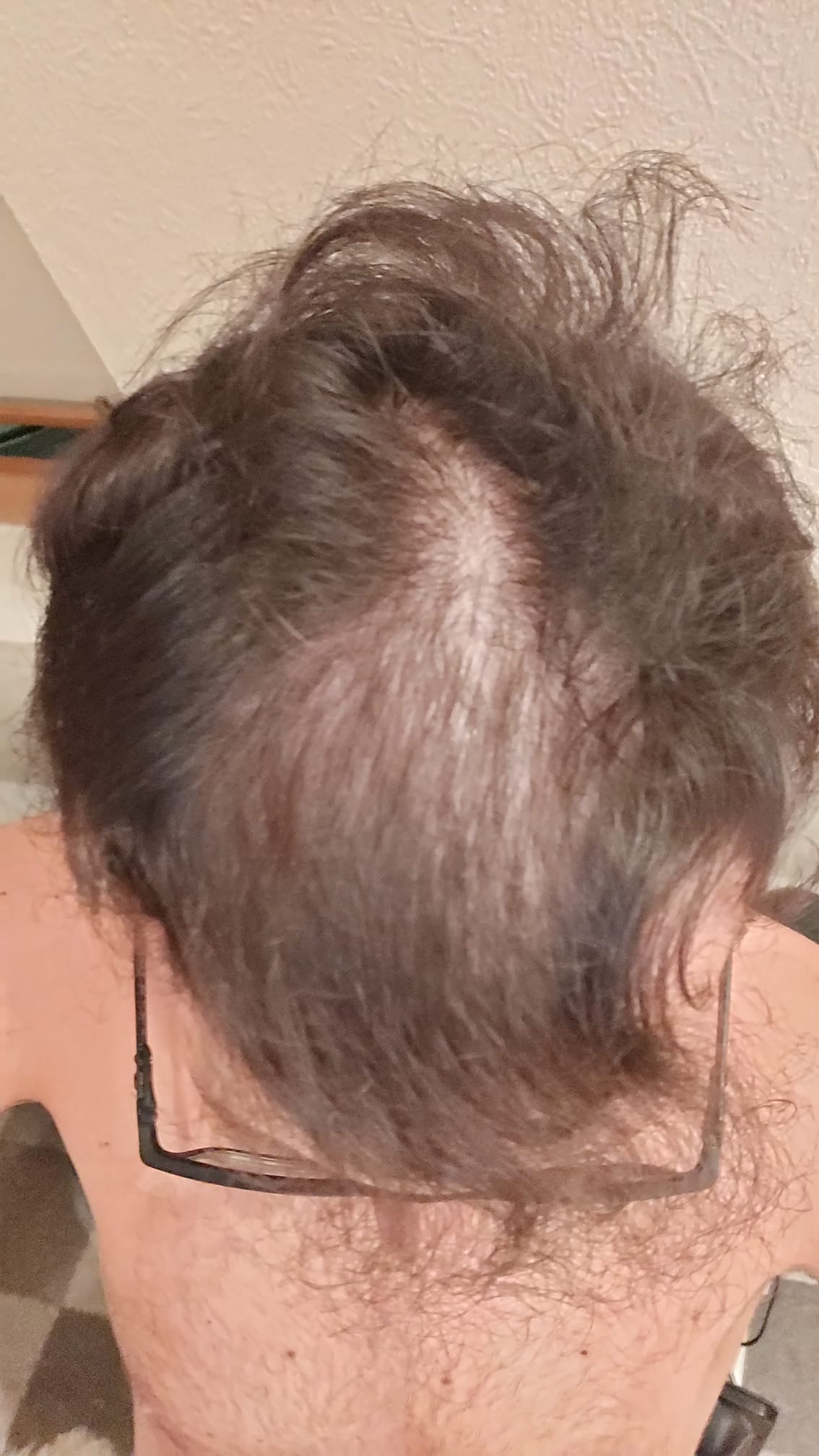 Am Oberkopf ist nämlich keine Stelle unbedingt komplett kahl oder haarlos, sondern einfach überall etwas ausgedünnt.