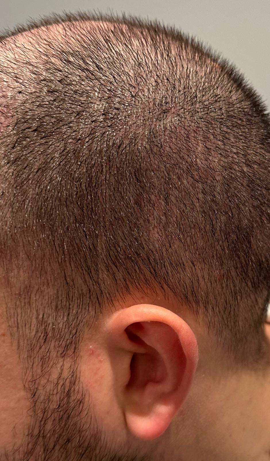 Seit einigen Wochen haben die Transplantate zu wachsen begonnen, sodass sich mittlerweile einige Haare auf meinem zuvor sehr kahlen Kopf befinden. Ich habe zusätzlich das Gefühl, dass immer noch weitere Haare durch die Kopfhaut dringen.