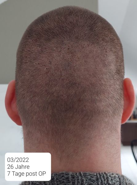 Etwa 8 Monate Post OP bemerkte ich einen vermehrten Haarausfall beim Waschen (ca 10-15 Haare) oder durch die Haare fahren (mehrmals vereinzelte Haare, bei jedem durchfahren). Außerdem hatte meine Kopfhaut einen dünnen weißen Belag, besonders nach dem Waschen. Auf 100 am Tag kam ich zwar nicht, sondern bei den bewussten auf ca 30-50 und da es nach 3-4 Wochen nicht von selbst besser wurde, machte ich einen Termin bei einer Dermatologin. Sie hatte was von „Fellwechsel“ wegen des Winters erzählt und meinte es sei zwar gerötet und sie würde solche weißen schuppigen Krusten öfter bei HT Patienten sehen aber gab mir dann nur ein Shampoo gegen ein seborrhoisches Ekzem mit. Ausprobiert. Keine Wirkung. Neuer Termin nach 1,5 Monaten. Irgendeine Cortison Lotion. Wurde etwas besser, aber als die Flasche leer war kamen die Beschwerden zurück. Bin dann zu einem anderen Dermatologen gegangen, weil der nächste Termin erst in 2 Monaten frei gewesen wäre und ich mich nicht sonderlich ernst genommen gefühlt habe und dort nichts weiter untersucht, sondern nur mit einer Lupe geschaut wurde. Der zweite Dermatologe hat sofort einen Pilztest gemacht und das SE ausgeschlossen. Er meinte es könnte eine Schuppenflechte oder ein Verdacht auf etwas anderes sein. Ein Schwefel-Teer und ein Harnshampoo, sowie eine Lotion verschrieben. Nach ca 6 Wochen ausprobieren einen erneuten Termin gemacht. Er meinte es habe sich verschlechtert und seine zuvor vermutete Diagnose Lichen Planopilaris benannt und überwies mich an eine Hautklinik zur Gewebeentnahme. Als letztes Mittel hat er mir zur einwöchigen Anwendung Betamethasondipropionat 0,1 Salicylsäure 3,0 und Propylenglykol ad 100,0 verschrieben, was das erste war was meine Kopfhaut gereinigt hat. Der Termin in der Klinik war jedoch erst 3 Monate später, sodass die Symptome zurückgekommen sind. Verdacht wurde nach der Gewebeentnahme bestätigt und habe von der Klinik Mometasonfuroat / MomeGalen verschrieben bekommen. Die Kopfhaut sieht besser, aber noch nicht gesund aus. Der Haarausfall hat nachgelassen, aber hin und wieder fallen doch welche aus. Ob die ausgefallenen Haare, bzw die Follikel direkt abgetötet wurden oder das erst bei der Vernarbung der Fall ist, weiß ich leider nicht. Ich hoffe sehr, dass da nochmal etwas nachwächst. Als Mittel zur Kaschierung wird eine HT empfohlen, aber nur wenn die Krankheit 6 oder 12 Monate ruht. Ggf mache ich dann nochmal eine Verdichtung, aber da warte ich auf das ärztliche ok und wie der Zustand dann aussieht. Eine Haarpigmentierung kommt bei Lichen (leider) nicht in Frage, da die Kopfhaut durch die vielen Nadelstiche gereizt wird. Bevor der Haarausfall begann, sah das Ergebnis schon recht aus, obwohl erst 8 Monate vergangen waren. Ich bemerke eine Stelle, bei der ich mit 2-4 Pumpstößen Streuhaar nachhelfe, die lichter ist. Trotz der LP Ich bin trotzdem sehr zufrieden und werde den weiteren Verlauf beobachten, bin in Behandlung und werde hier immer wieder mal Updates posten.