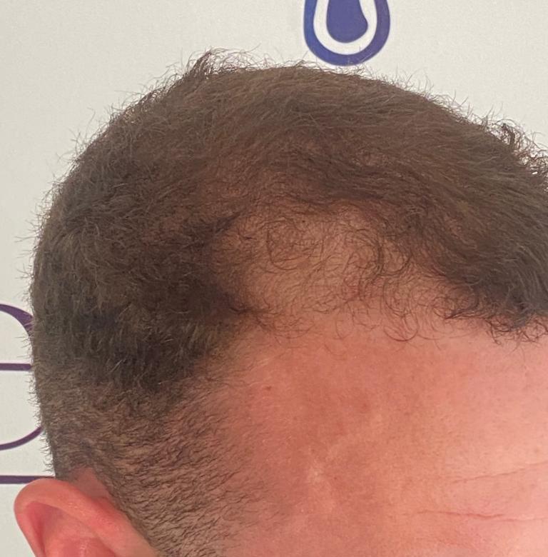 2. du hattest an den GHE und etwas dahinter die Transplantation, genau dort, wo man auch das Mehr an Haare sieht.