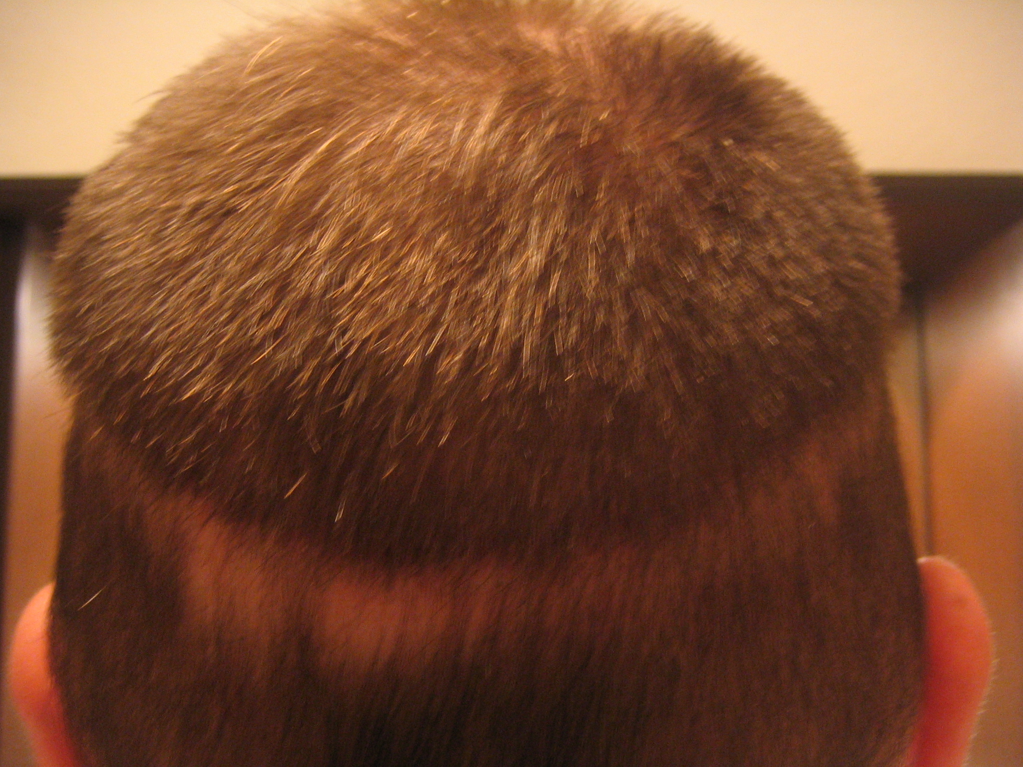 Ich bin zu einem Friseur meines Vertrauens gegangen und er hat die Haare über der Narbe einfach etwas länger gelassen, so dass ich nun insgesamt ca. 14mm Haarlänge habe, nur über der Narbe dann ca. 20mm, so dass Sie größtenteils verdeckt ist.
