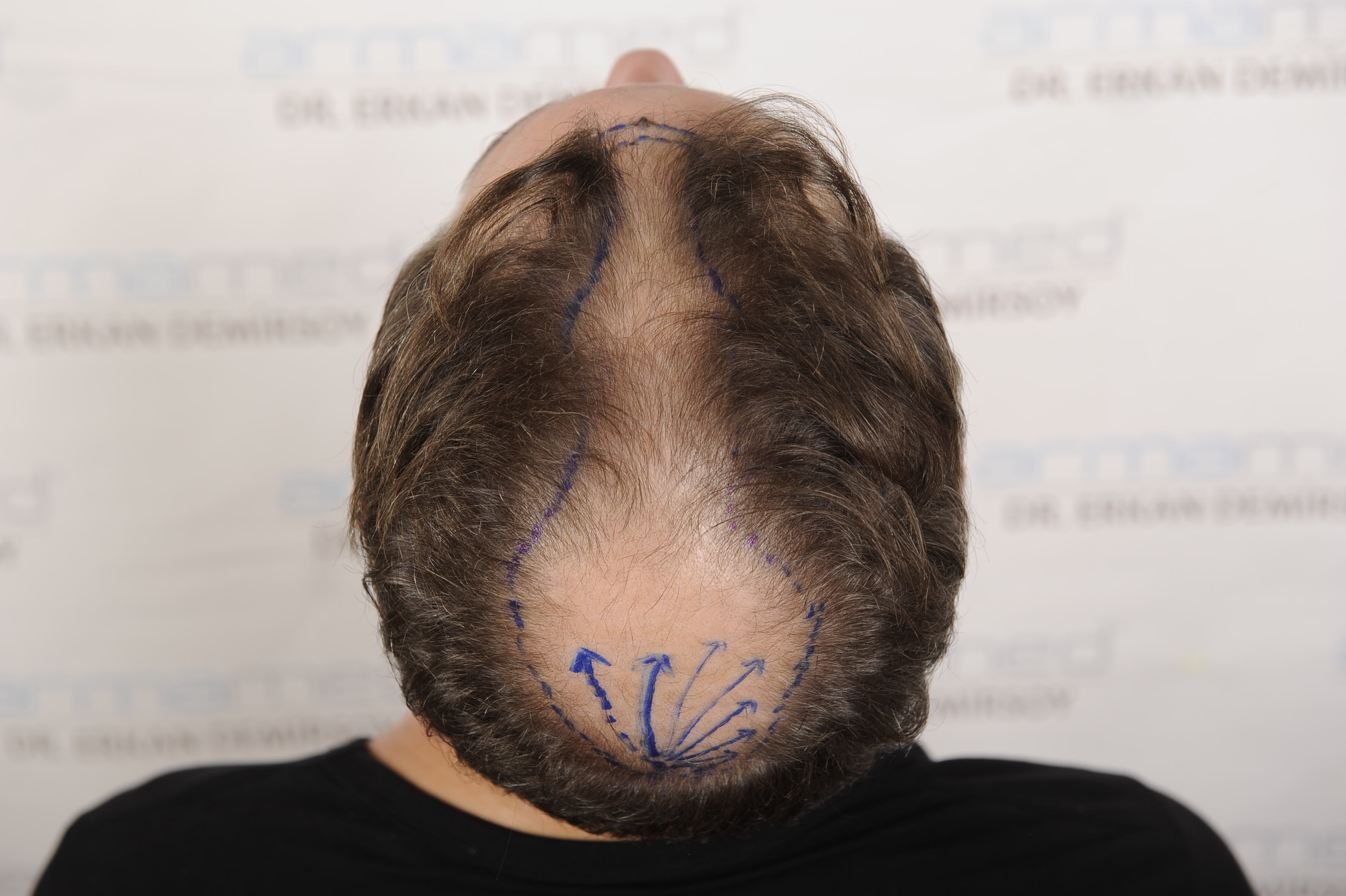 Dr. Demirsoy hat dann den Stift gezückt und los gelegt. Mir war im Vorfeld eher die Tonsur wichtig und das Deckhaar. Meine Haarlinie war für mich zunächst kein Thema. Ich wurde schnell vom Gegenteil überzeugt und es wurde vereinbart, dass die Haarlinie angepasst wird, wenn es die Ausbeute der Grafts zulassen wird. Hier wurde ganz ehrlich kommuniziert.