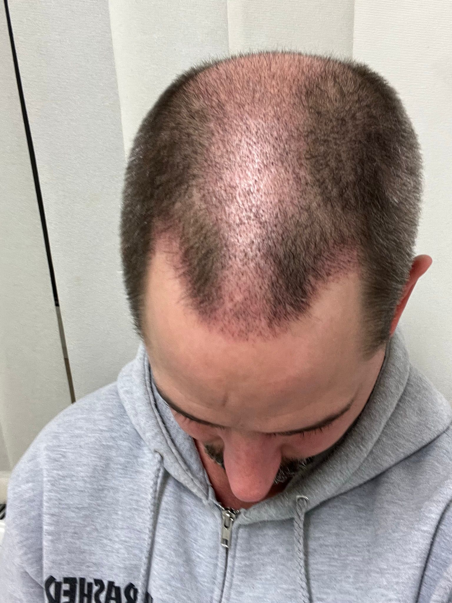 Super Ergebnis, vor allem für die relativ geringere Graftzahl und die riesige Tonsur, die man mit einem Eingriff fast nie hundertprozentig dicht bekommt. Du scheinst sehr dicke Haare zu haben, das hilft natürlich.